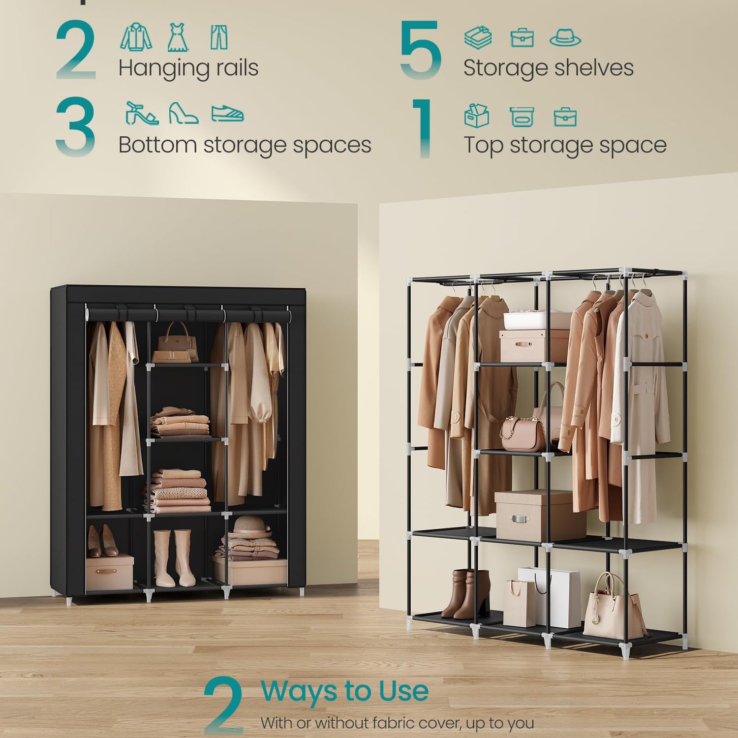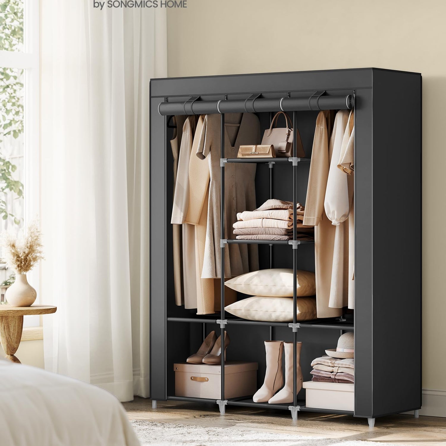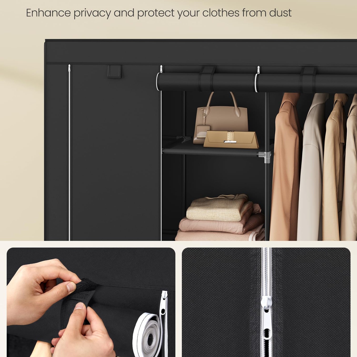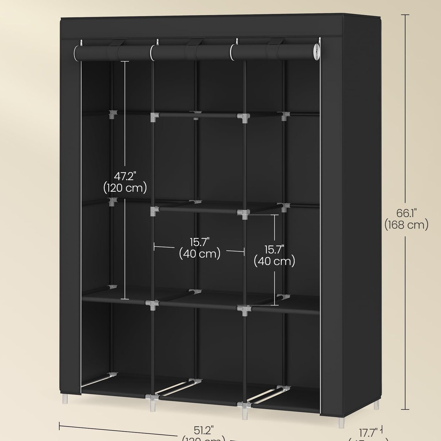 SONGMICS Portable Closet, 51.2 Inch Large Capacity Wardrobe Closet Organizer with Fabric Cover, Hanging Rods and Shelves, 51.2 x 17.7 x 66.1 Inches, for Bedroom, Living Room, Ink Black URYG096B01