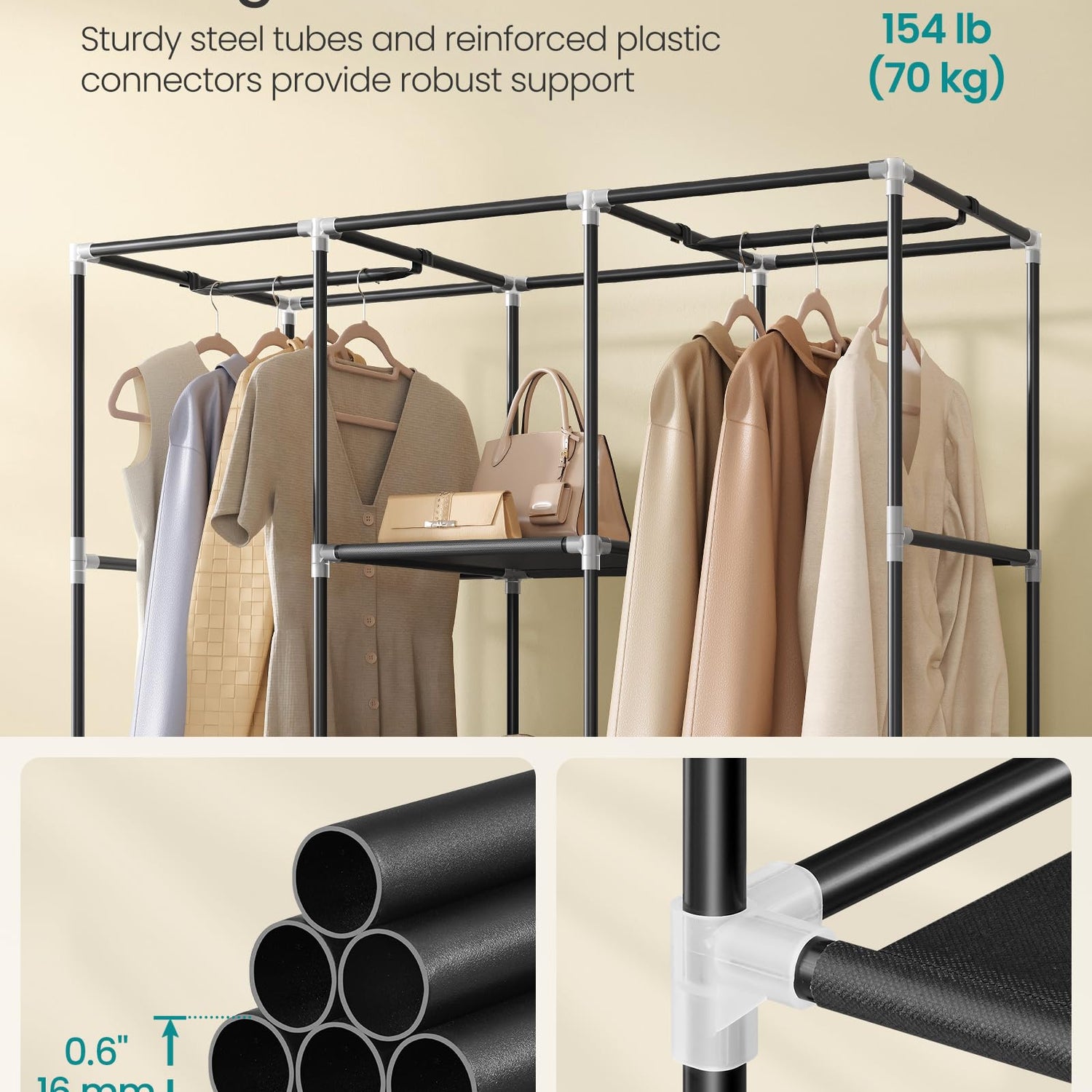 - 【STRENGTH TO SUPPORT】With 0.6'' dia. metal tubes, reinforced plastic connectors, and quality non-woven fabric, this portable closet organizer ensures sturdiness and durability, providing strong support for your beautiful clothes