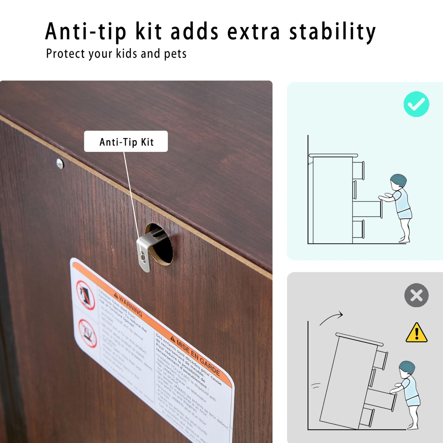 - Secure Anti-Tipping Design: Designed with safety in mind, this tall wardrobe includes an anti-tilt mechanism and pre-drilled holes on the back, allowing you to securely anchor it to the wall and prevent accidental tipping for enhanced stability.