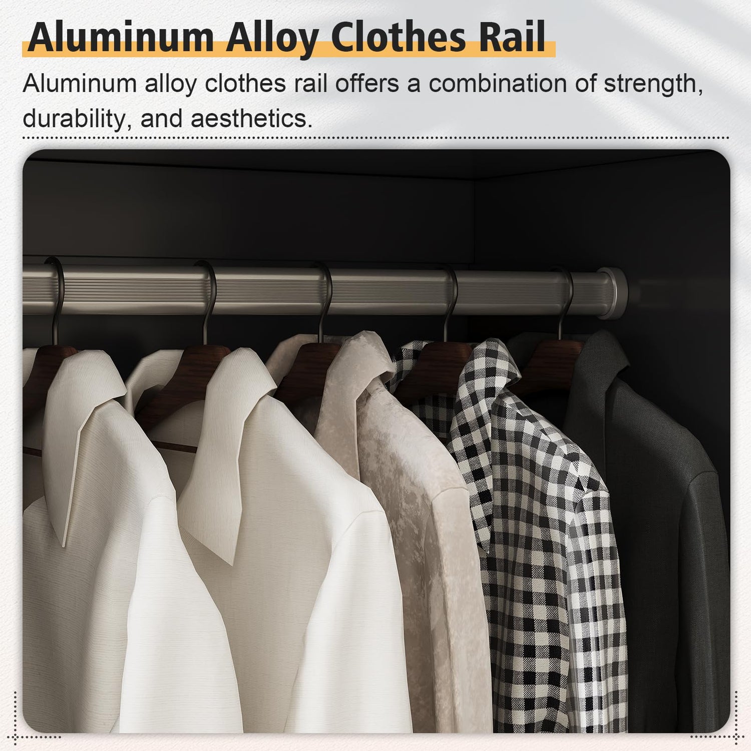 - 【Aluminum Hanging Rod】Our closet features a durable aluminum hanging rod. It is lightweight and very sturdy, able to support a large amount of clothing without bending or sagging, perfect for hanging coats, jackets and other heavy clothing.The 70-inch closet combines elegance and practicality, making it a stylish addition to any room. Its European curved design with modern curved motifs carved into the doors and cabinetry adds to the sophistication and elegance.