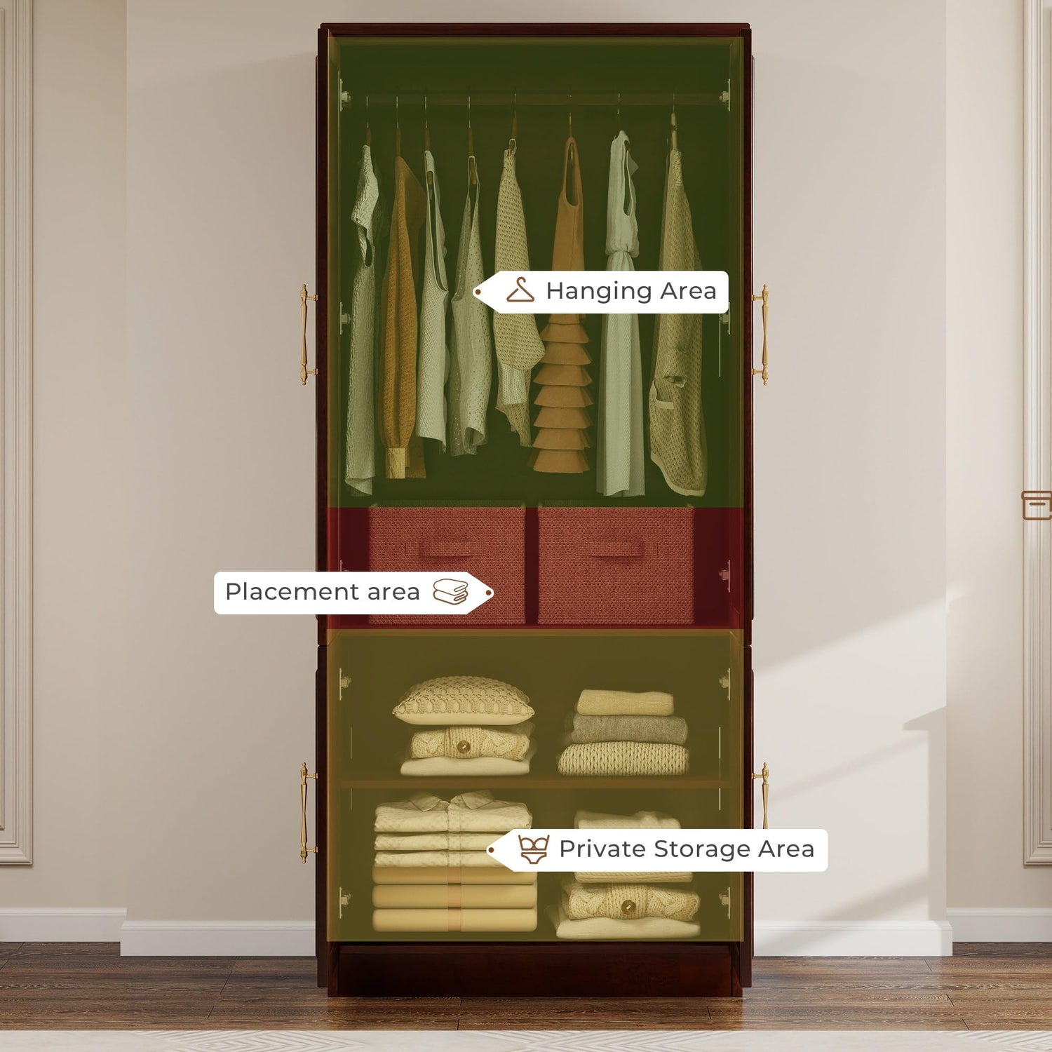 Tafeumob Solid Wood Armoire Wardrobe: Small Classic 2 Doors Solid Wood Bedroom Armoires with Hangingrod Clothes Cabinet Storage Cherry Red Finish 31.26" L x 19.69" W x 70.87" H