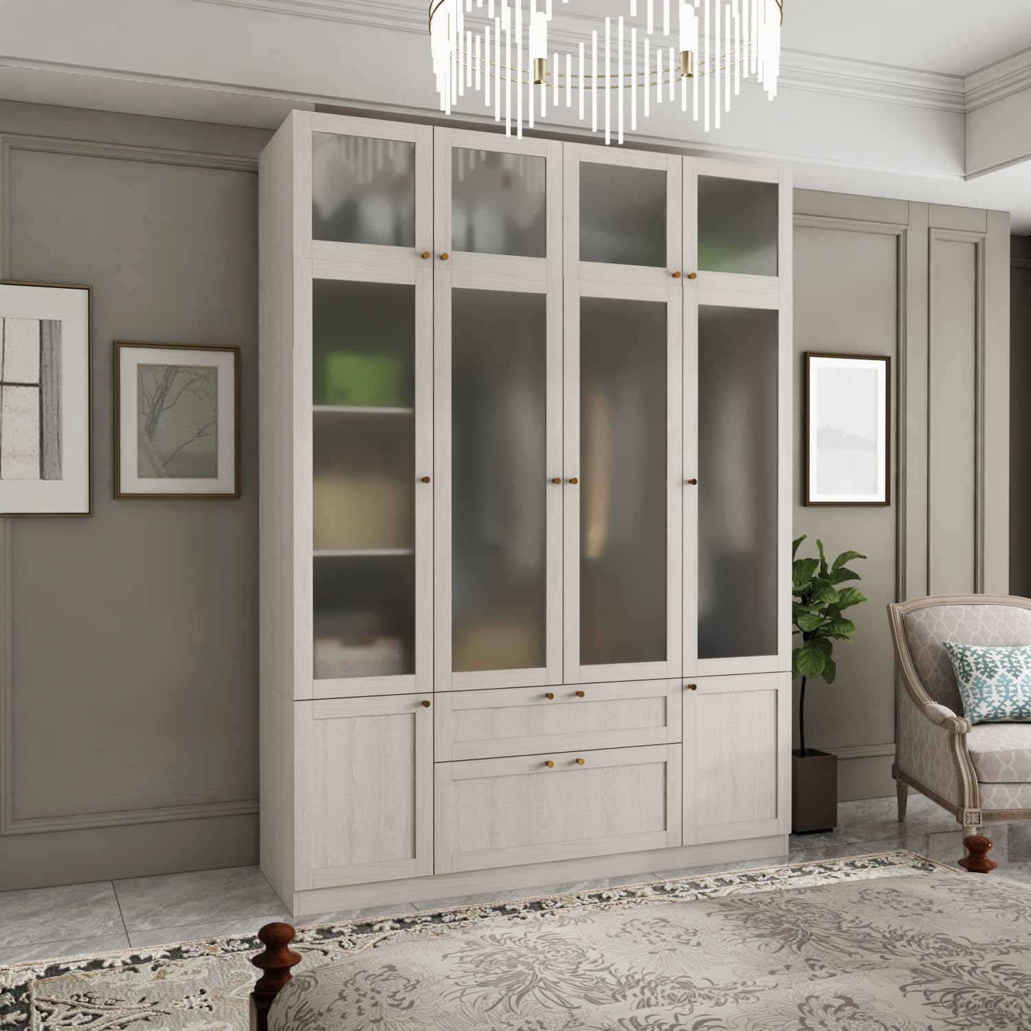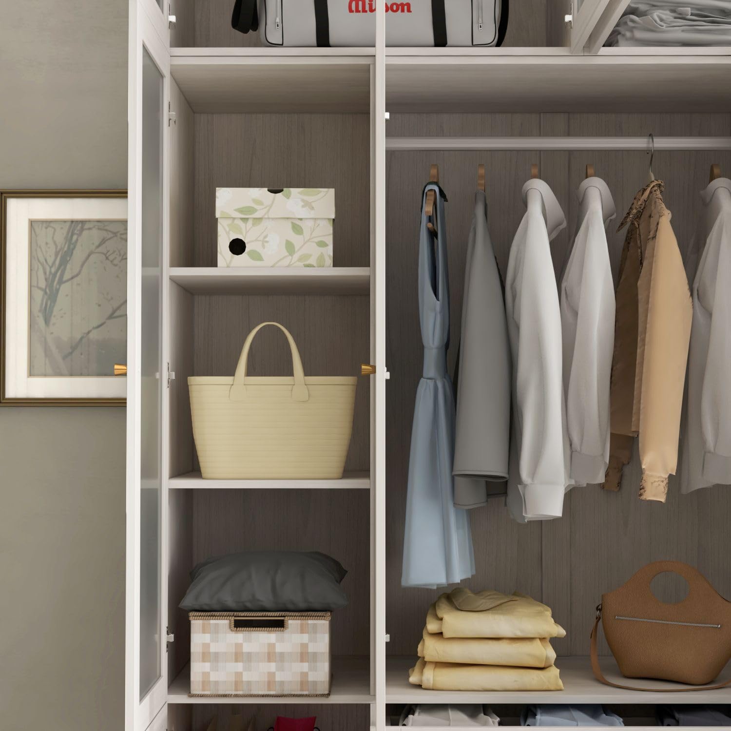- Exquisite & Modern - This 4 door clothes wardrobe features elegant appearance with soft hue that infuses the space with cozy ambiance. Adorned with wood grain texture and frosted glass, it seamlessly blends nature’s charm with modern aesthetics, creating harmonious visual feel.