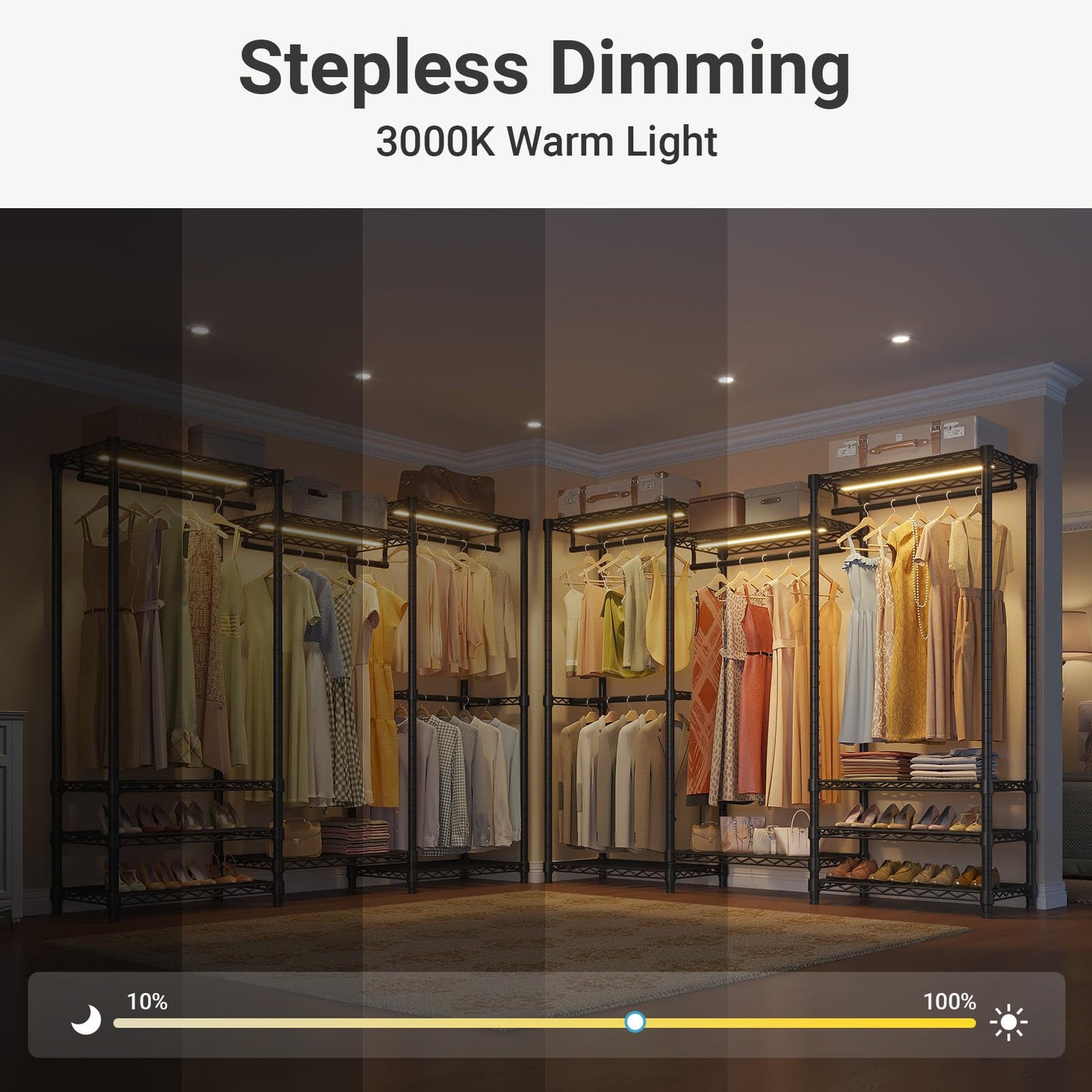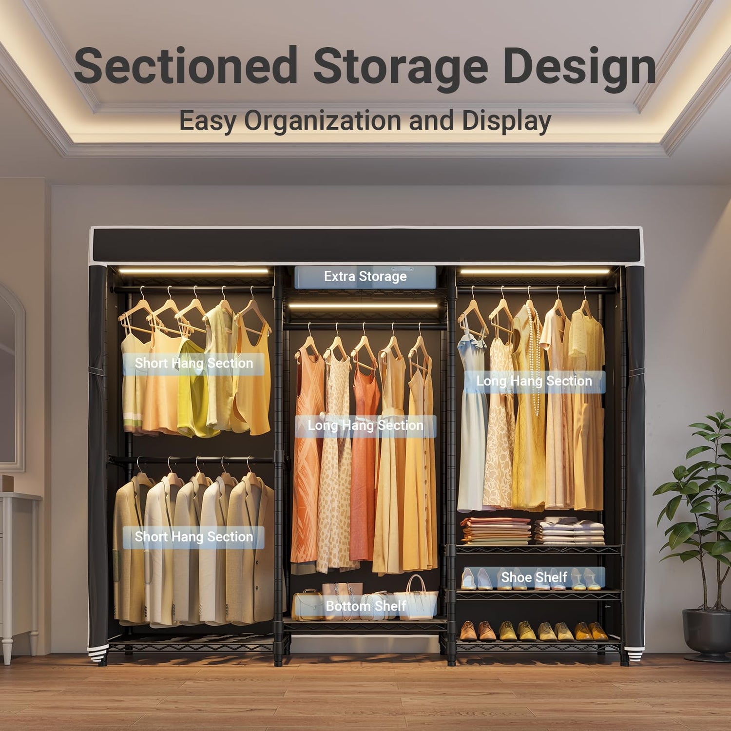 VIPEK V5LC Garment Rack Heavy Duty Covered Clothes Racks with Dimmable LED Light 3000K Warm White, Portable Closet Wardrobe Freestanding Clothing Racks for Hanging Clothes, Black Rack with Black Cover