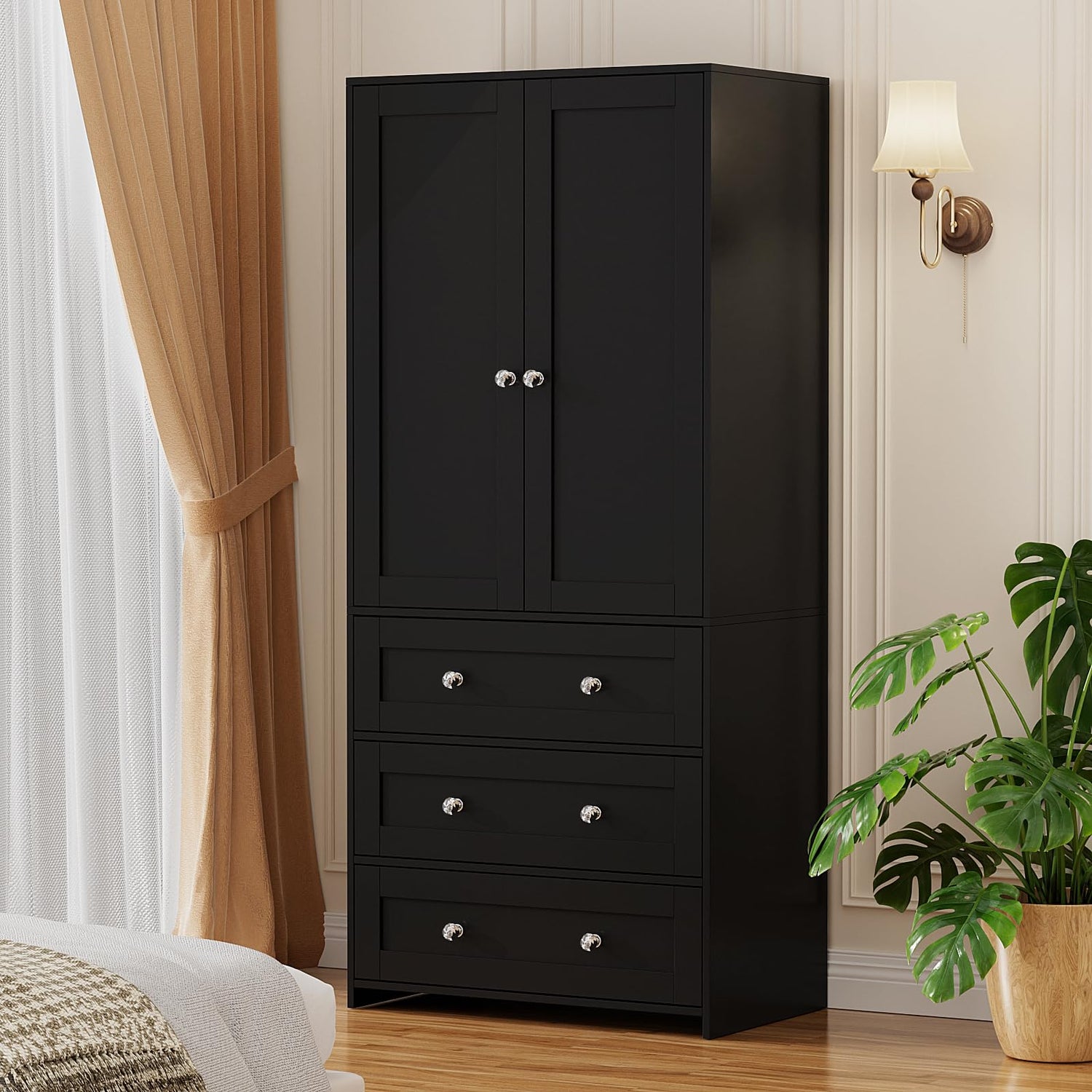 - Large Capacity Wardrobe: This armoire wardrobe closet features a free hanging rod and 3 super large drawers, allowing you to neatly organize your items. Perfect for storing dresses, suits, pants, and more.