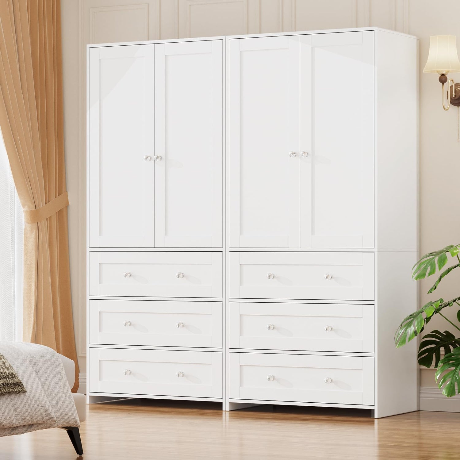 - Fashion Wardrobe with Mirror: Our wardrobe closet comes with large mirror and crystal knobs, allowing you to have a full view of yourself and add an elegant & noble charm to your bedroom.