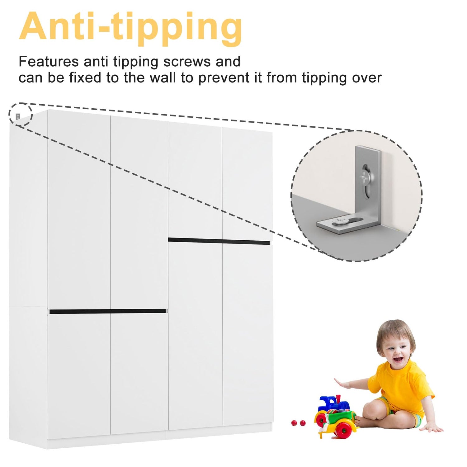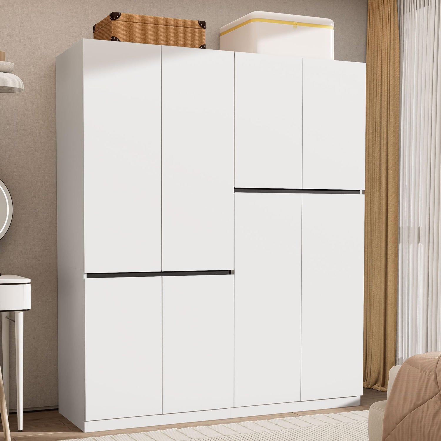 Wakefit 4 Doors Armoire Closet, Wooden Bedroom Armoires with Hanging Rod, Wardrobe Closet with Doors, Freestanding Wardrobe Cabinet for Bedroom, Guest Room, White(20.4" D x 63" W x 74.8" H)