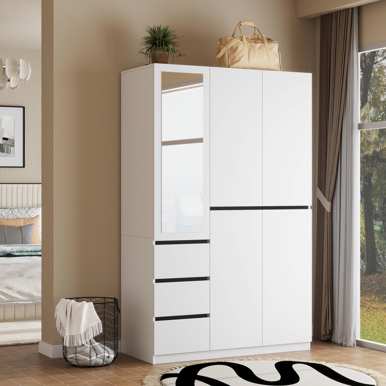 - 【Ample Storage Space】Three built-in clothes racks provide extra hanging space for long coats, dresses, and jeans. Additionally, three large drawers offer ample storage for neatly organizing clothing, socks, bags, towels, and other essentials.