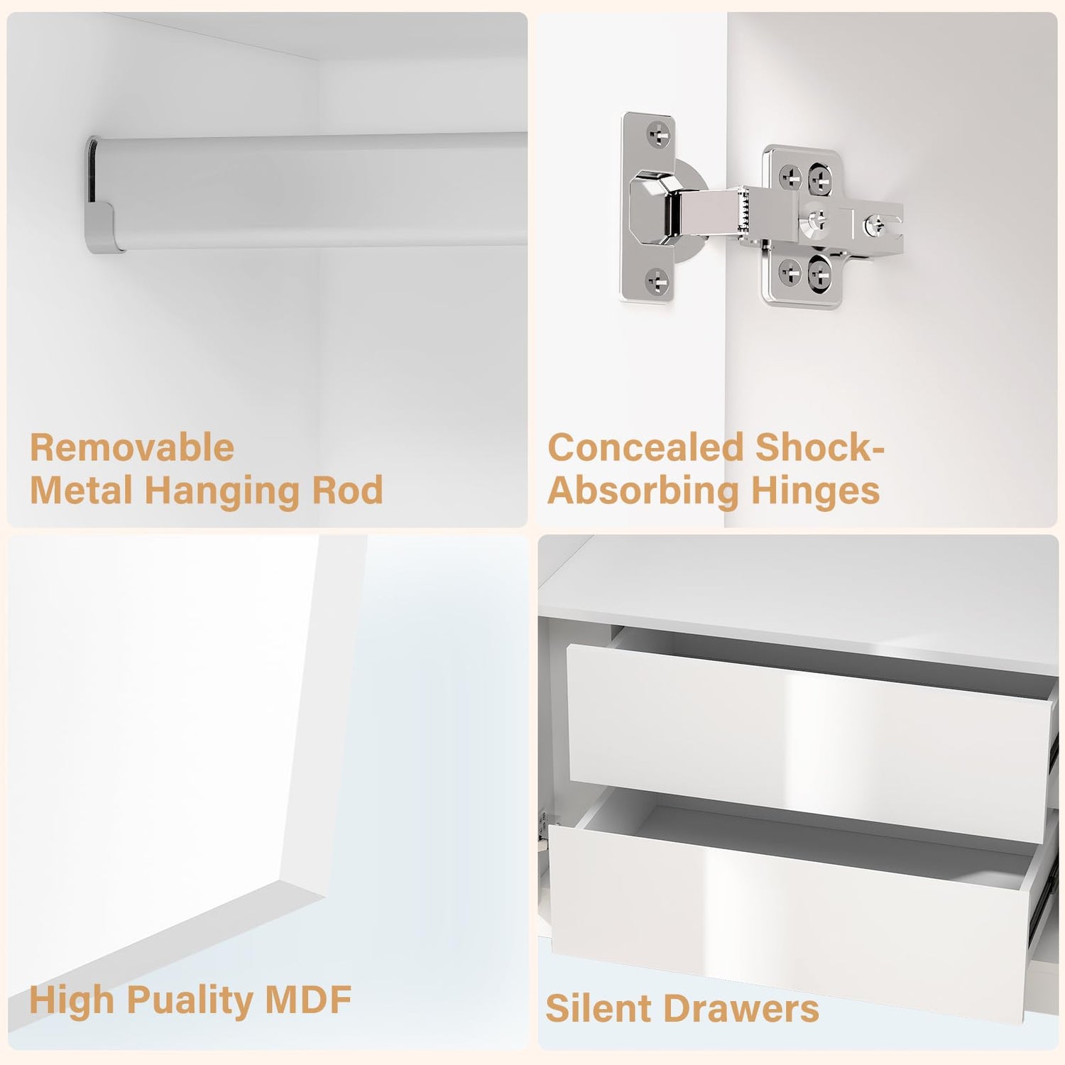 • 【Easy Assembly】The assembly of the closet is simple and straightforward, all parts, tools and instructions are packed in 2 beautifully packaged boxes and delivered directly to your doorstep. If you have any questions, please feel free to contact us.