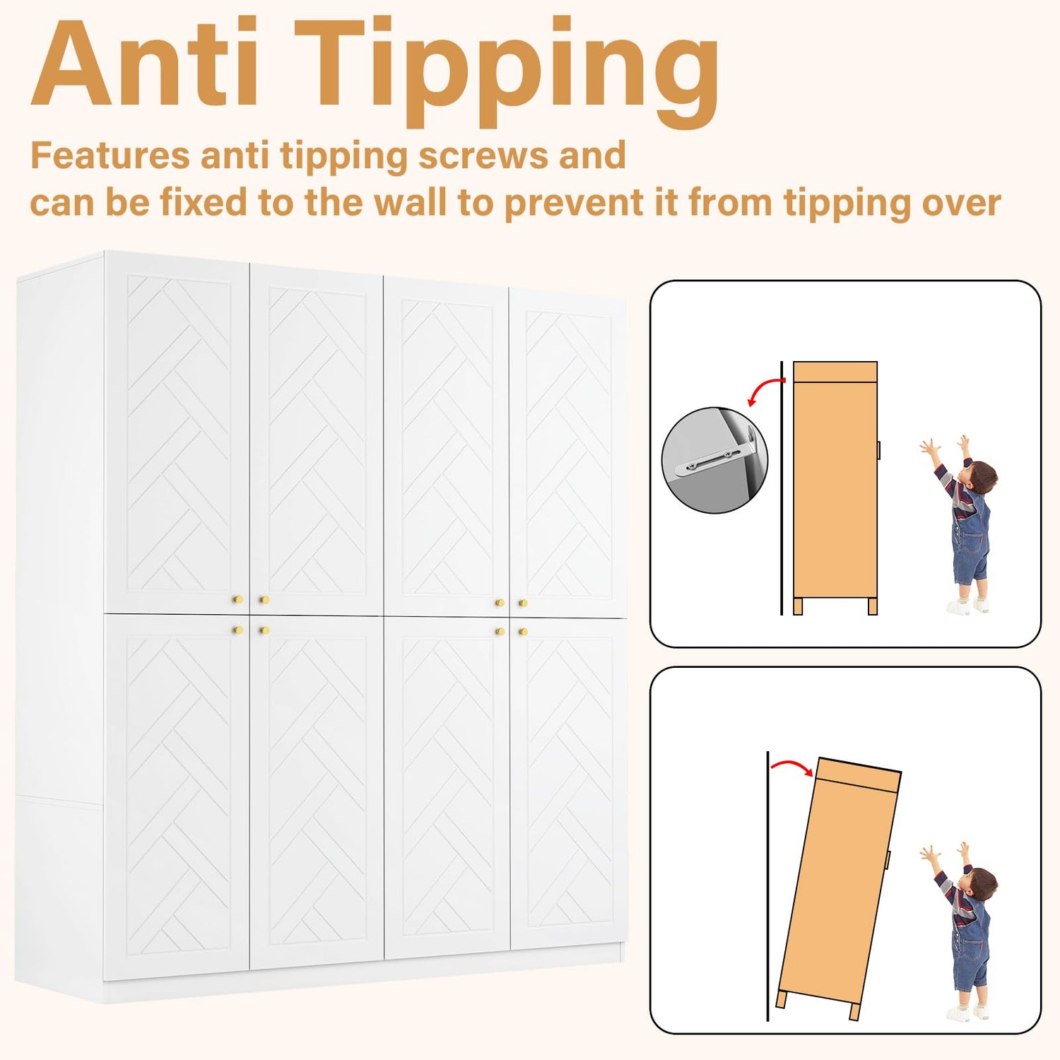 • 【Strong And Durable】This large closet is made of MDF which is known for its load-bearing strength. With a one-cabinet, dust-proof design, the sturdy base supports the entire structure for enhanced durability and longevity, providing a long-lasting closet solution for your home.