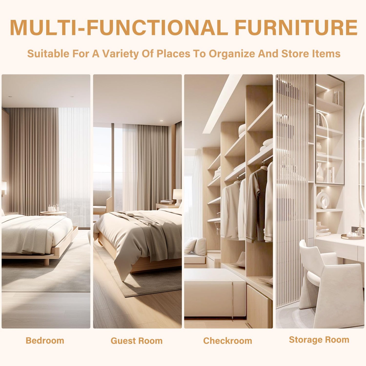 • 【Efficient Zoned Storage】Built-in double hangers for hanging long clothes, three large compartments for massive storage, clothing, accessories and home textiles are clearly categorized. With two drawers, it is easy to organize underwear, socks and other small items to ensure that all items are neat and orderly.