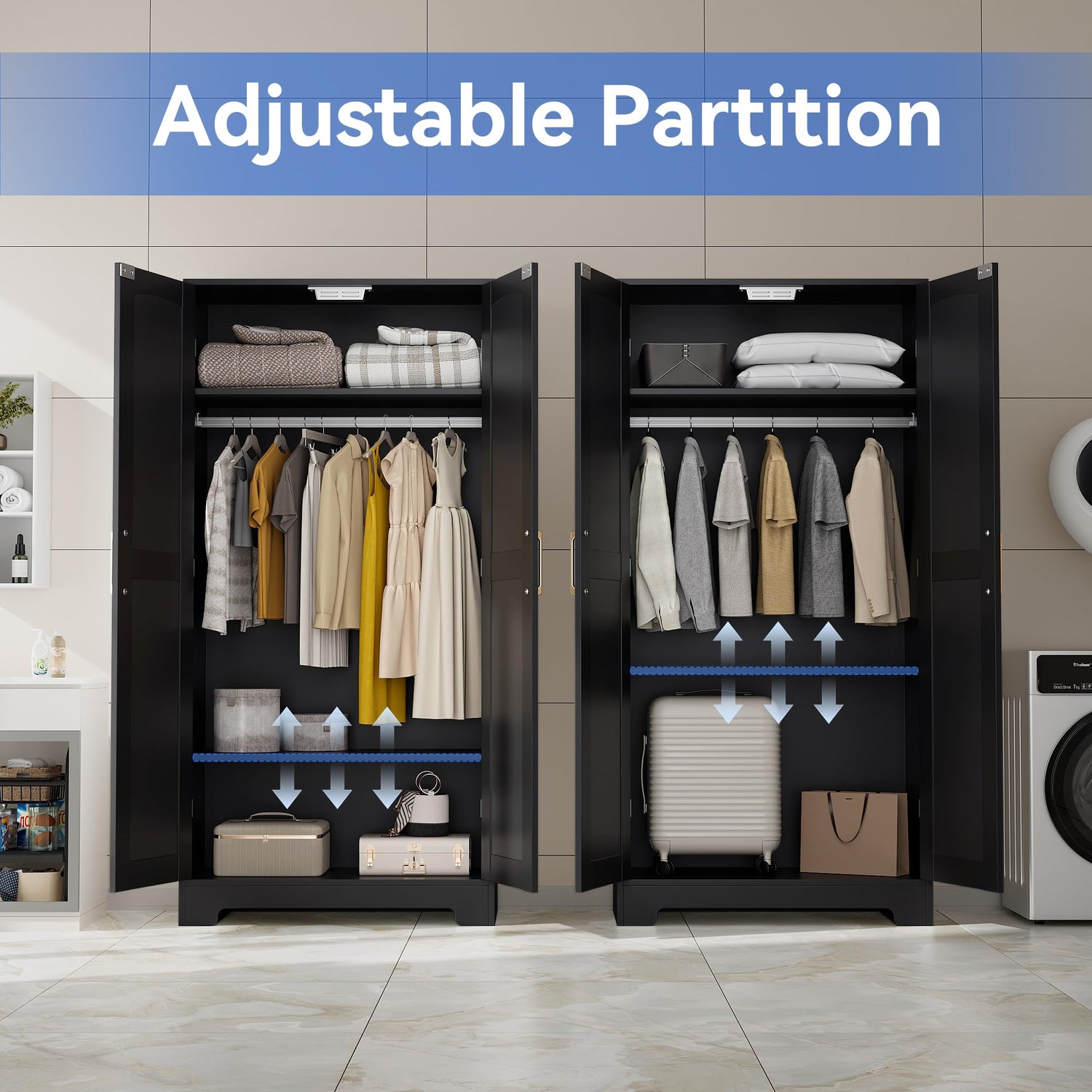 • 🎩【Easy Access and Safety Features】: Designed with a silent magnetic latch and wide hinges for 180° door opening, this wardrobe closet allows for effortless access. Additionally, it includes a tipping prevention device to ensure safety, making it suitable for various environments like living rooms, bedrooms, and offices.