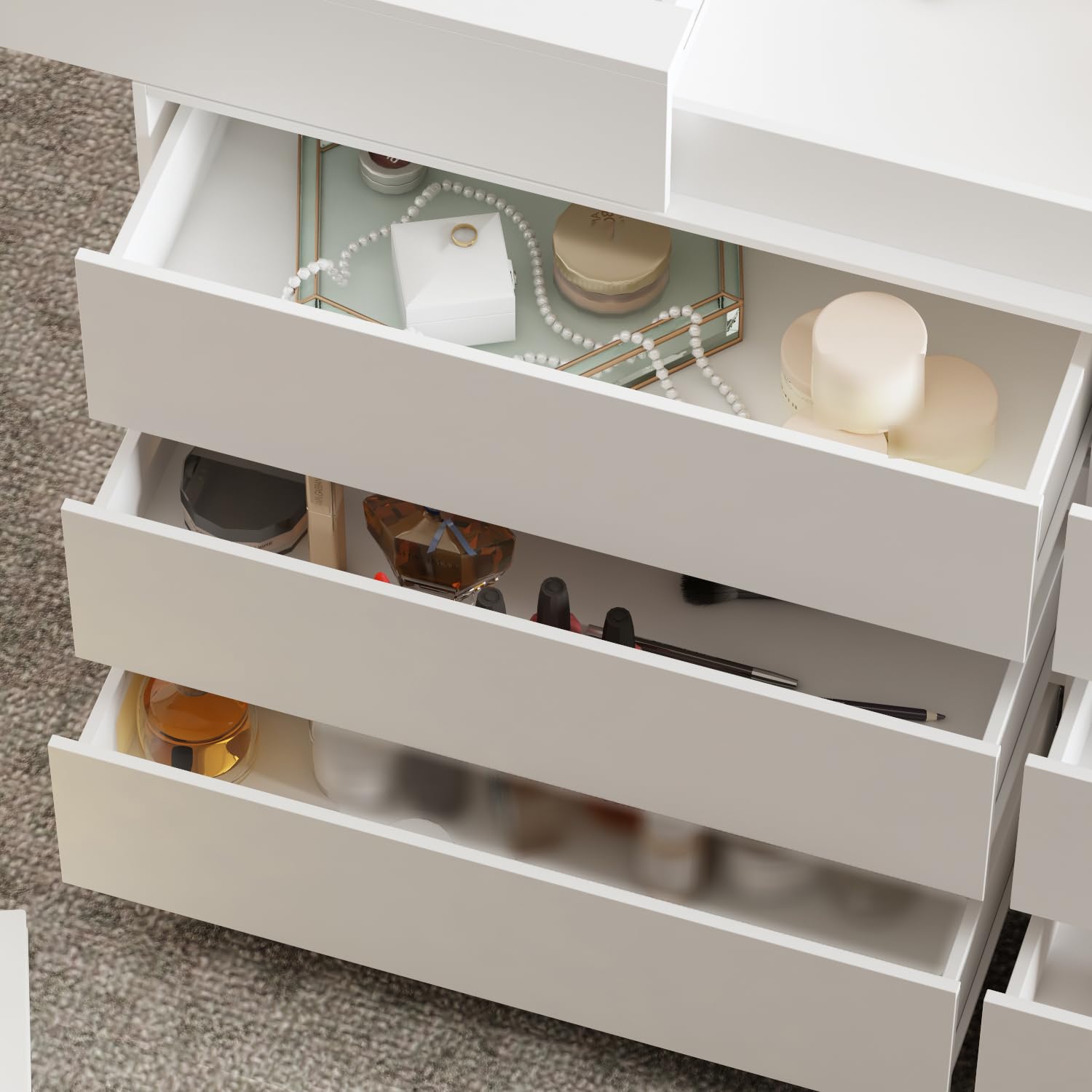 WOODTIME Armoire Bedroom Island with Sliding Glass Top, Wardrobe Closet with 12 Drawers, Walk-in Closet Island Dresser for Bedroom Shops, White