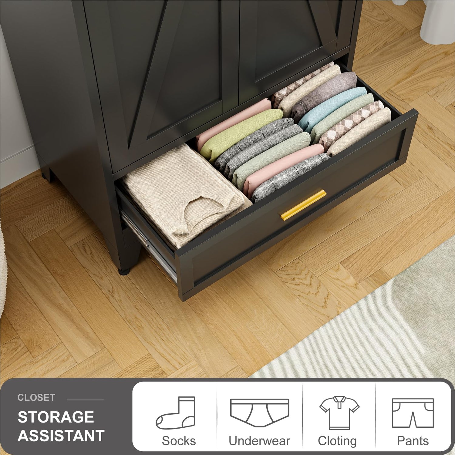 XIOMIOHTRQ Metal Wardrobe Cabinet, 71" Tall Armoire Wardrobe Closet with Drawer, Farmhouse Clothing Storage Cabinet for Bedroom, Laundry (Black, 1 Drawer)