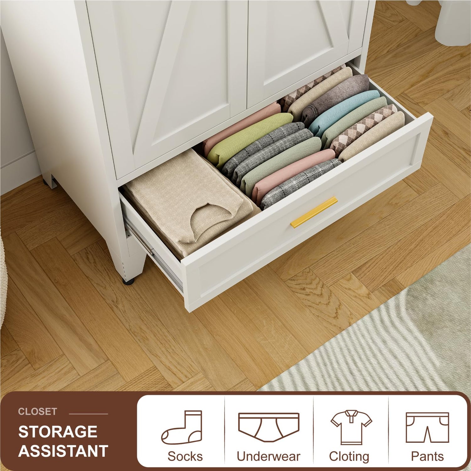 XIOMIOHTRQ Metal Wardrobe Cabinet, 71" Tall Armoire Wardrobe Closet with Drawer, Farmhouse Clothing Storage Cabinet for Bedroom, Laundry (White, 1 Drawer)