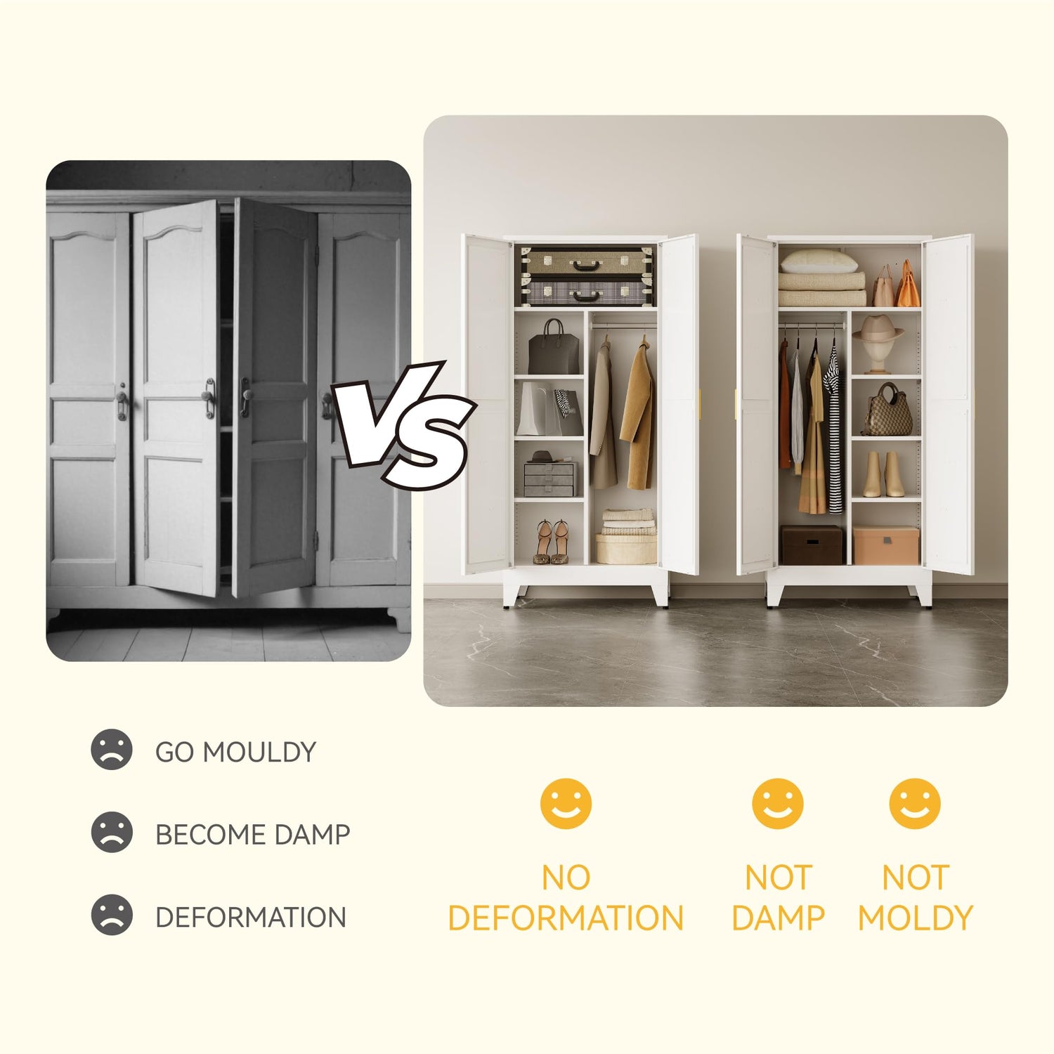 - 【Magnetic Closure】XIUSVON metal wardrobe cabinet door is equipped with two strong magnetic closing devices to ensure that the cabinet door is tightly closed. In addition, the wardrobe adopts an anti tilt design, with reserved holes on the back for easy fixation on the wall to prevent tipping.