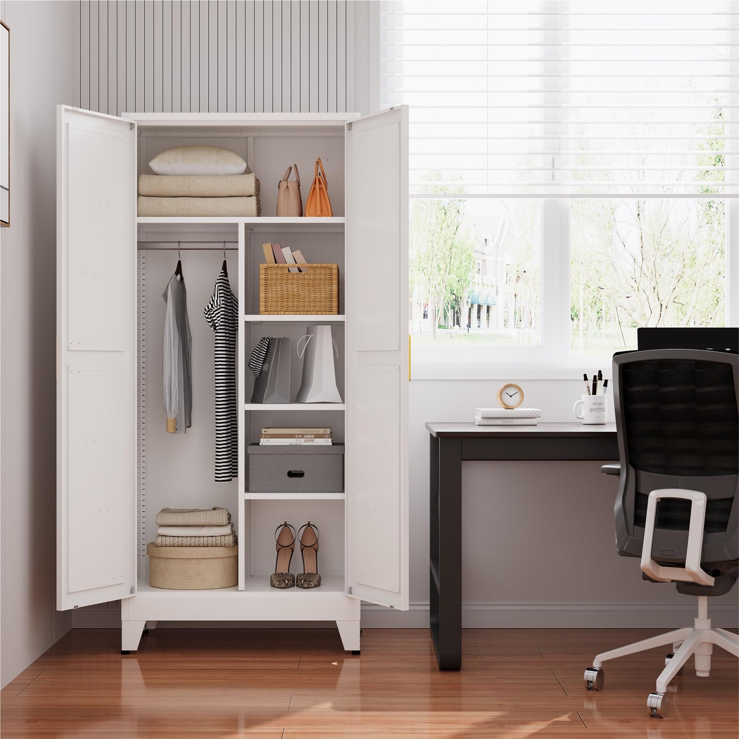 XIUSVON Metal armoire Wardrobe Closet with Hanging Rod,71'' Metal Wardrobe Cabinet with 2 Doors and 2 Adjustable Shelves, Bedroom armoires,Laundry Room cabinets,armario de ropa Closet(Modern, White)