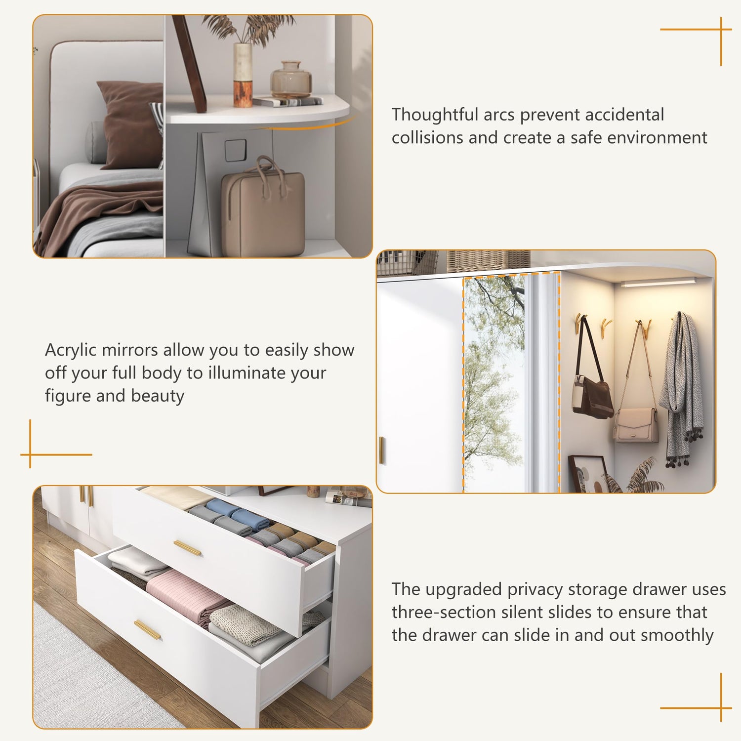 • Full-Size Mirror: The acrylic mirror embedded in the cabinet door is more stable and less prone to breakage than a regular mirror, which can help you in the dressing process.