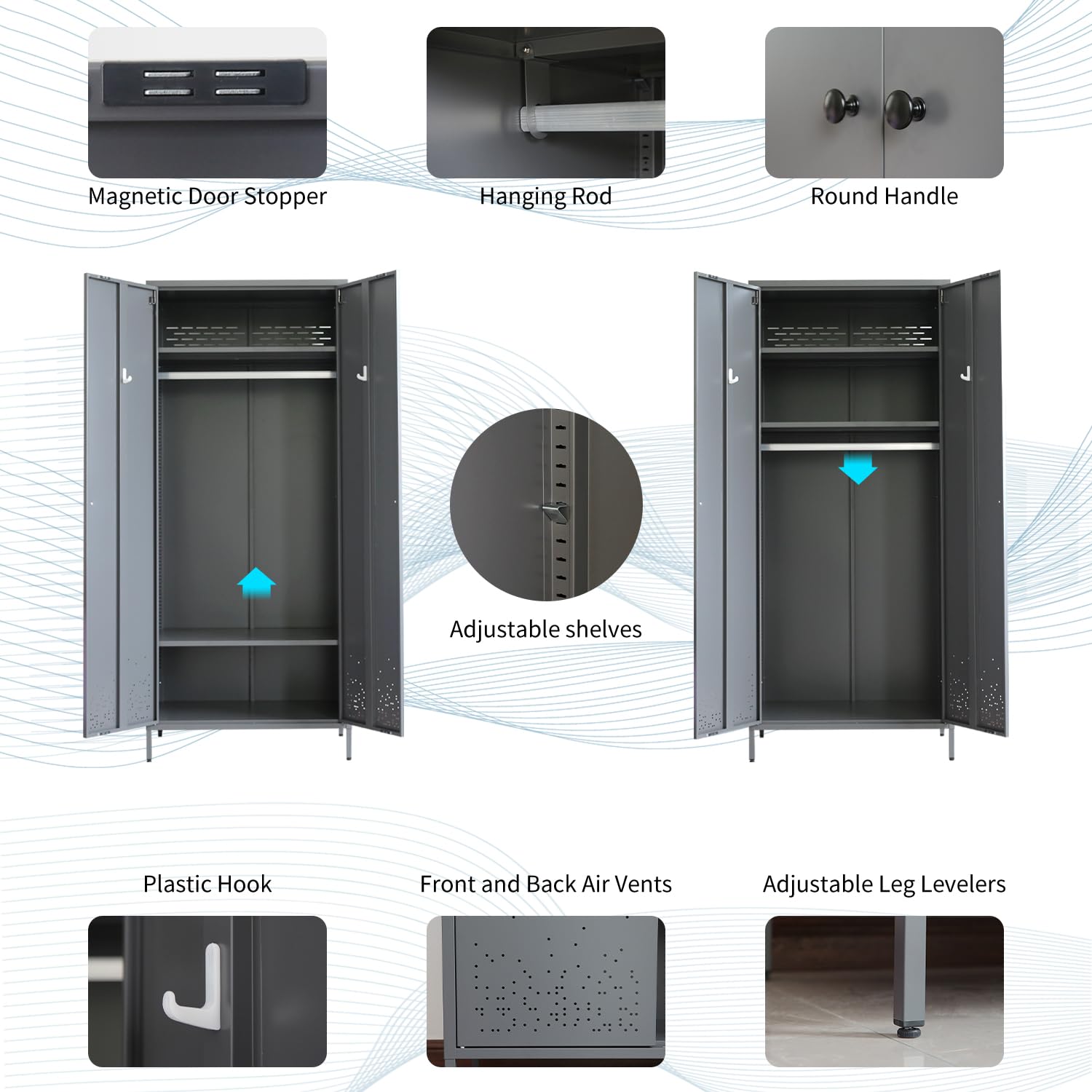 • 【Safety and Multi-Scenario】 Safety tested stability helps reduce rollover accidents. Each door with rubber buffers, which will reduce the noisy while closing door. The larger size is enough for your daily needs, flexible space is suitable for your office, bedroom, bathroom, basement, warehouse etc.