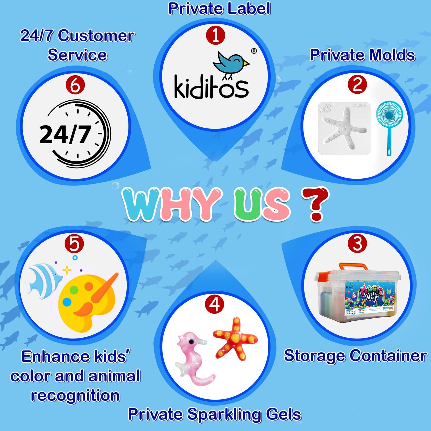 - Aqua Fairy Water Gel Kit:Designed with bright, eye-catching colors, the Magic Water Elf Kit is excellent for toddlers learning about colors. The variety of animal molds enhances cognitive skills through shape and color recognition.