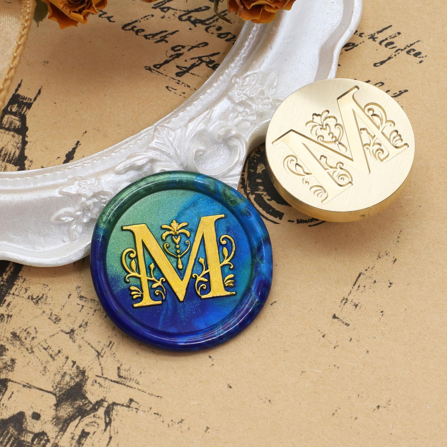 SWANGSA Initial Alphabet M Wax Seal Stamp Kit, Classic Retro Letter Sealing Stamp with 200pcs Sealing Wax Beads Kit for Wedding Invitations Cards Envelopes (M)
