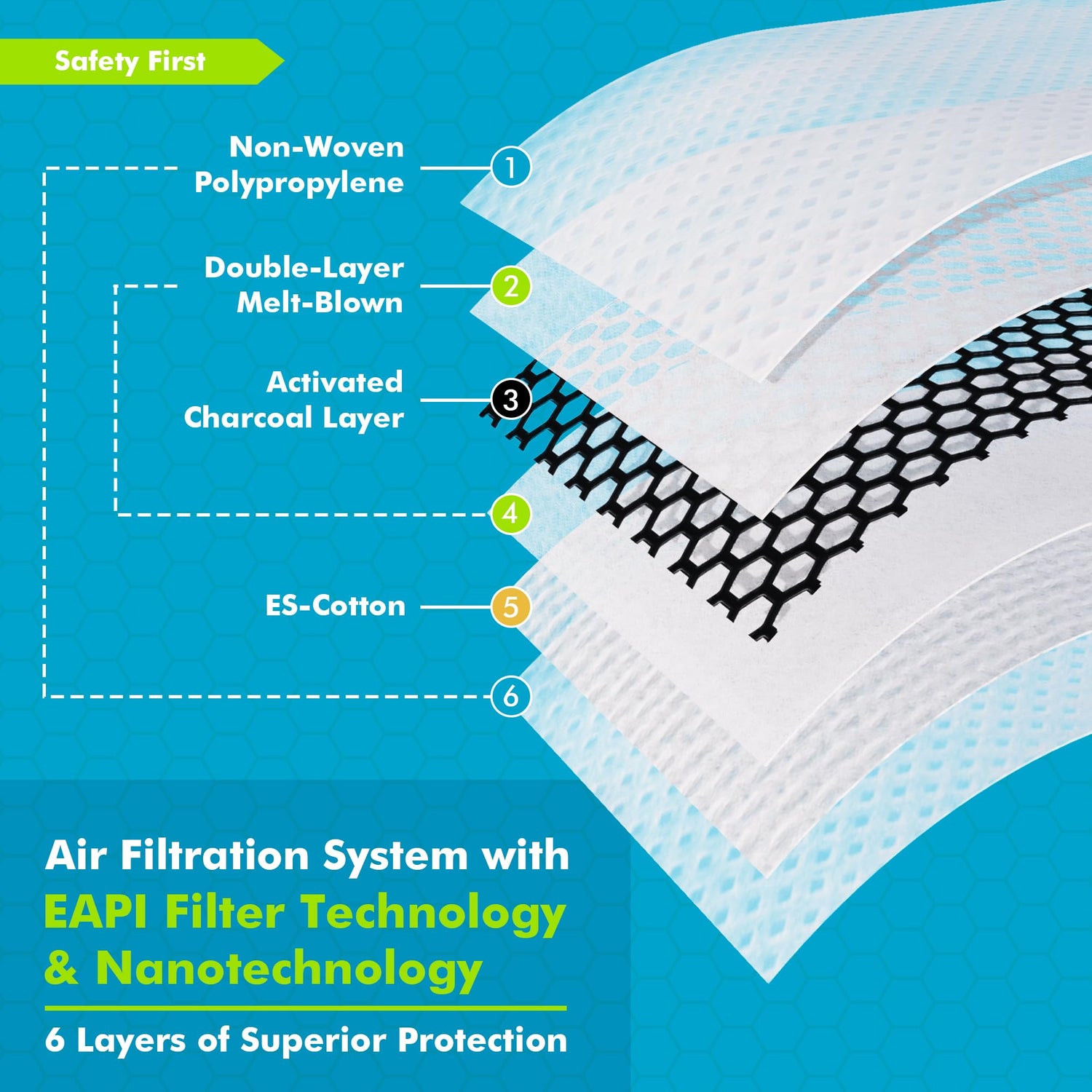 - 【99.6% FILTRATION】A modern, comfortable reusable respirator with 6-layer filter provides 99.6% filtration to protect you from dust, pollutants, and other airborne particles. The activated charcoal layer reduces and removes many odors to provide you with a more pleasant experience. Supplied with 6 filters for you to replace