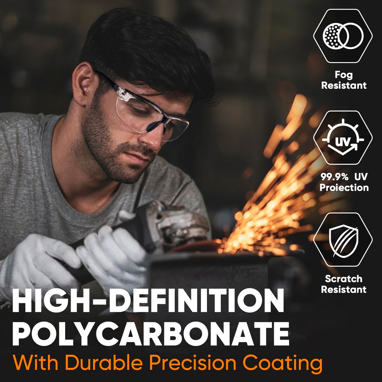 - [DURABLE AND LIGHTWEIGHT] Crafted with premium polycarbonate, these safety glasses have exceptional durability and impact resistance while remaining lightweight. They meet ANSI Z87.1 standards and feature a wraparound design for panoramic coverage.