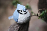 Hand Carved Wooden Bluejay Bird Figurine Wood Bird Statue Bird Scuplture for Shelf Decor