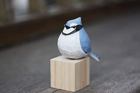 Hand Carved Wooden Bluejay Bird Figurine Wood Bird Statue Bird Scuplture for Shelf Decor