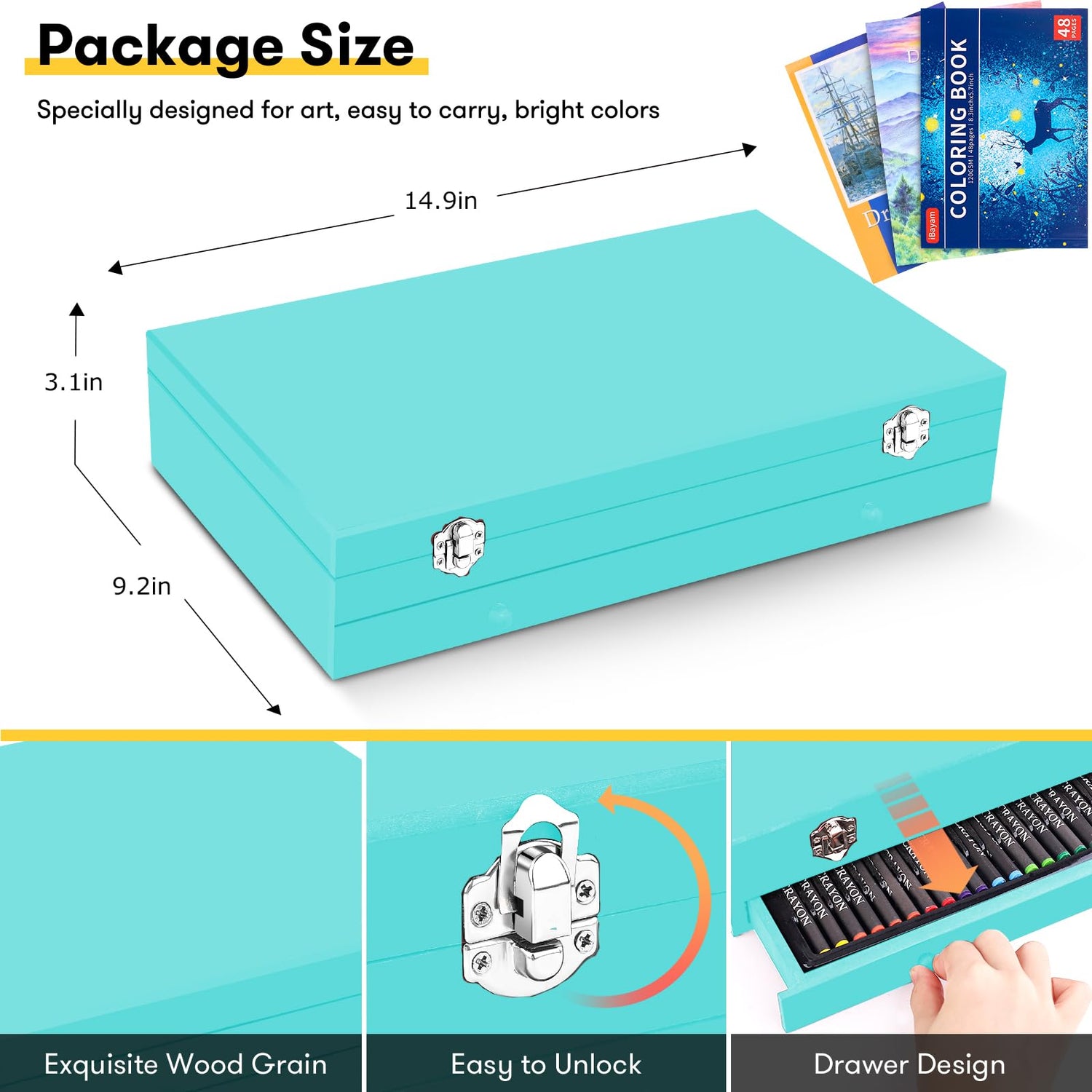 Details: iBayam Art Supplies, 150-Pack Deluxe Wooden Art Set Crafts Drawing Painting Kit with 1 Coloring Book, 2 Sketch Pads, Creative Gift Box for Adults Artist Beginners Kids Girls Boys