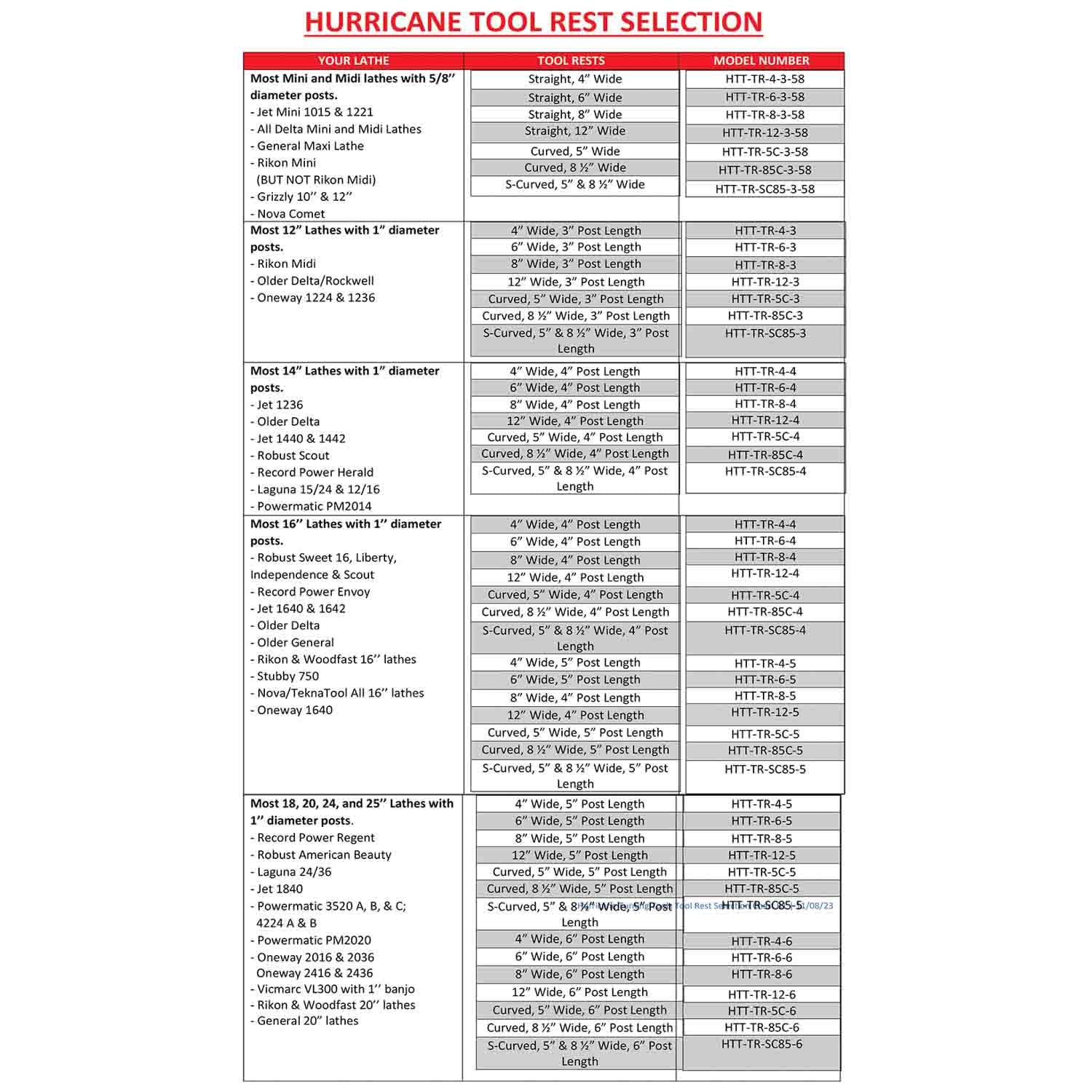 - Hurricane Tool Rests are a modular style tool rest system and come as a tool rest bar, post and washer which need to be assembled before use; Tool Rest holder/banjo NOT included