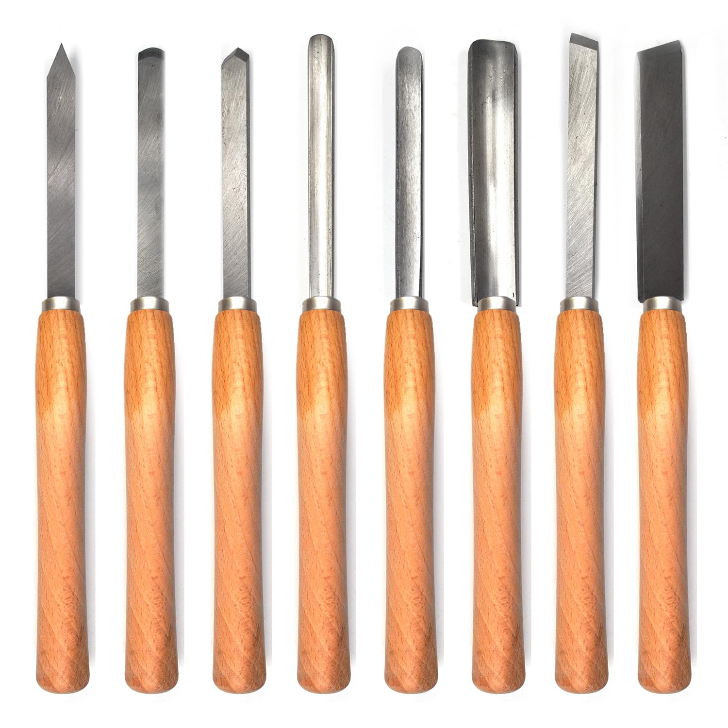 Professional Wood Turning Chisel Lathe Chisel Set with 2 Skew 1 Spear Point 1 Parting 1 Round Nose & 3 Gouge Tools,8 pcs Set, for Wood Job