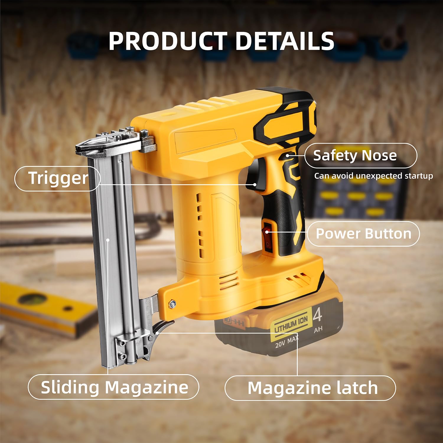 - 【Battery Powered 18 GA brad nailer】This narrow crown stapler is compatible with Dewalt 20V Max Batteries such as DCB200, DCB201, DCB203, DCB204, DCB205, DCB206, etc. Note: Cordless Brad Nailer only, battery is not included