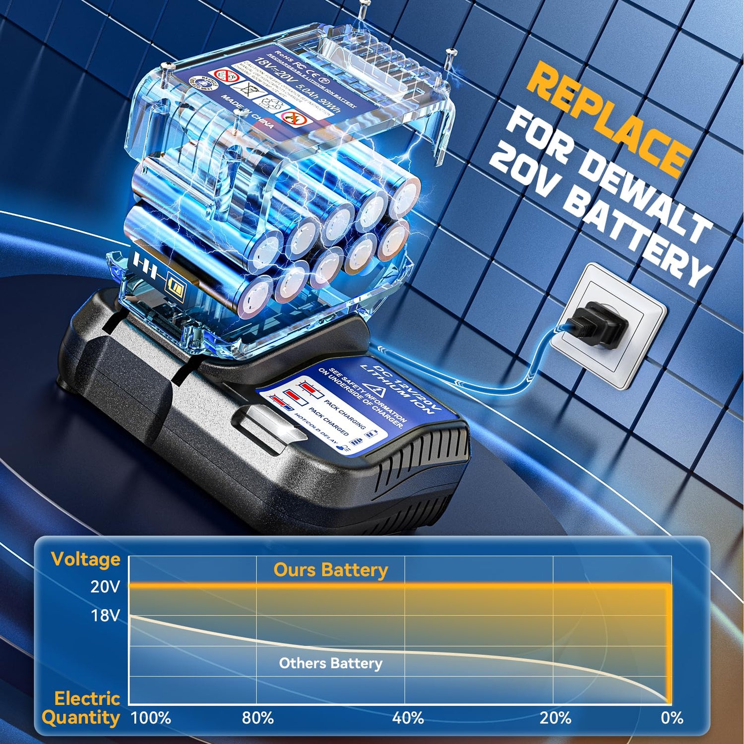 - Compatible with DeWALT Batteries: Unlock versatility with our jigsaw tool, compatible with DeWALT 20V batteries like DCB206, DCB205, DCB204, DCB181, and more. Plus, enjoy an extra 5Ah battery and a rapid 3A 66W charger, ensuring you're always powered up and ready to tackle any project!