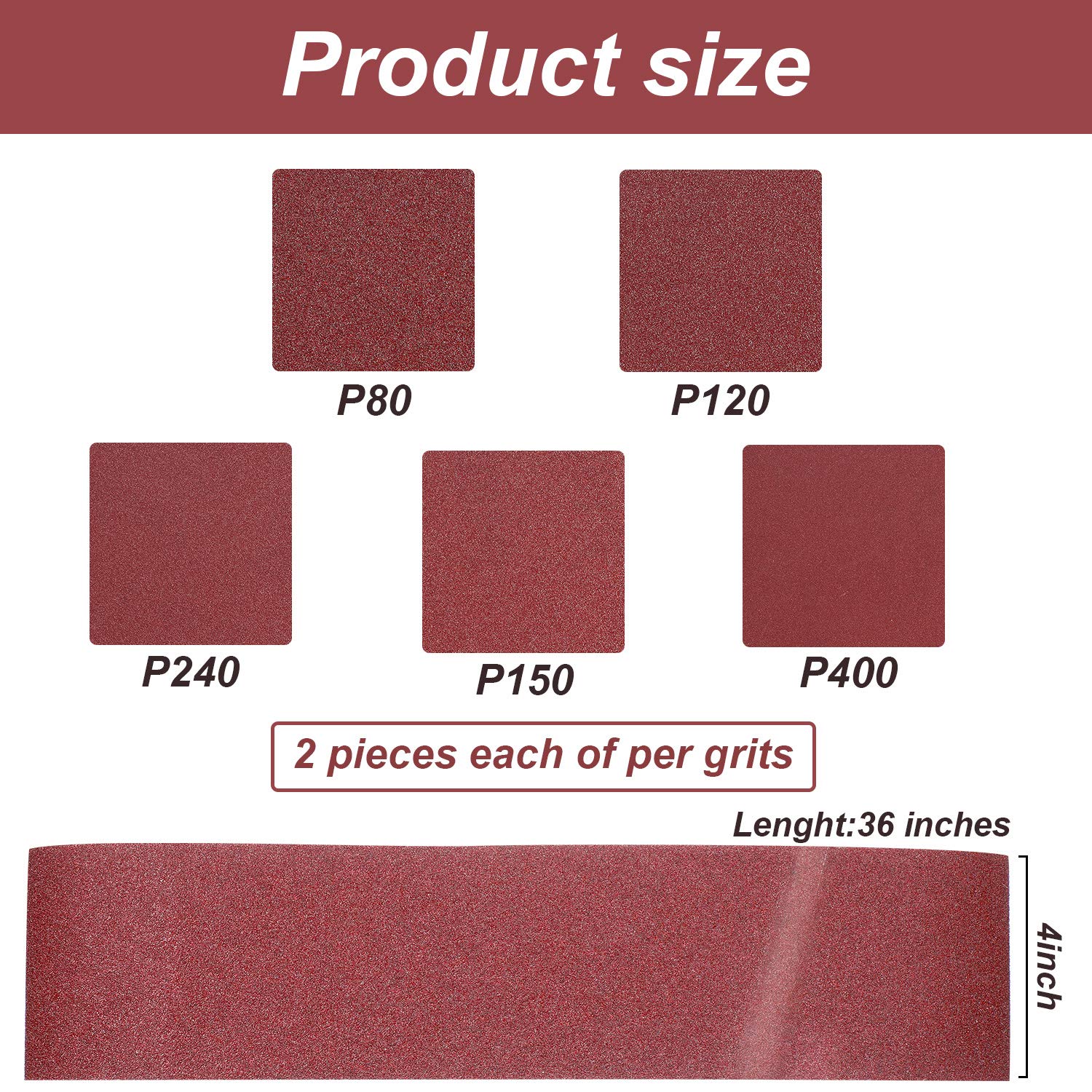 Aluminum Oxide Sanding Belts Includes 4 x 36 Inch Sanding Belts (80/120/150/240/400 Grits) and 6 Inch Self Stick No Hole Aluminum Oxide Sanding Disc (22)