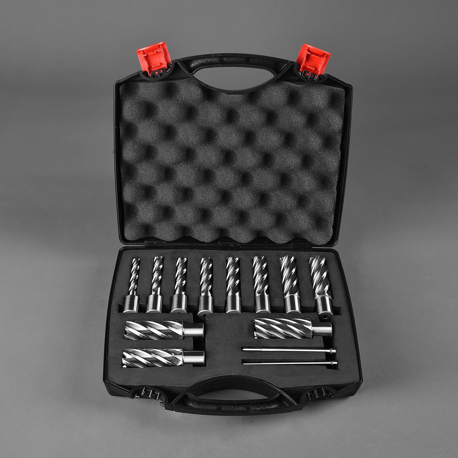 - Includes: 11 HSS annular cutters; 2 pilot pins & 1 carrying case