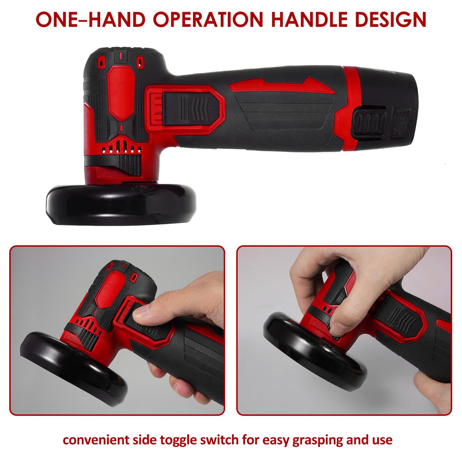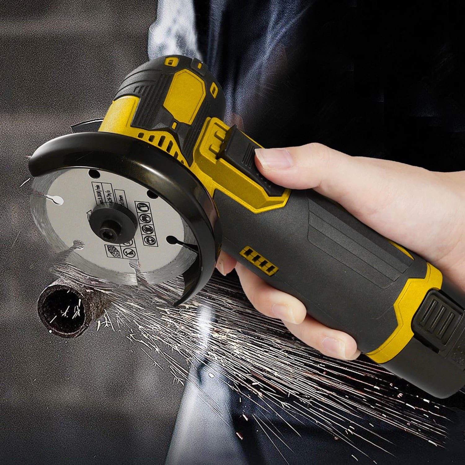 - 【Mini & Compact】12V angle grinder is designed to be lightweight at only 1100g. and can be operated by either man or woman with one hand.Widely used for grinding, cutting, sanding and polishing processing of various materials, including metal, tile, concrete, pipes, conduits and other solid materials.