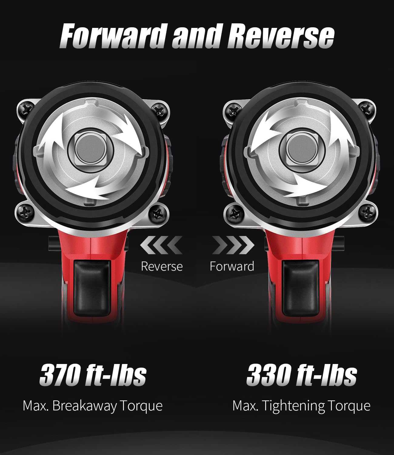• POWERFUL MOTOR: By removing rusted-on or excessively tightened nuts and bolts, this 1/2 impact wrench, which has a high-end, strong motor, offers maximum productivity; Maximum torque for tightening is 330 ft-lb, and loosening is 370 ft-lb