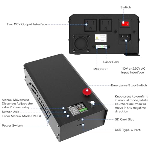 - Diversified Control Methods: Standard equipment includes an offline controller and power box with two 110V sockets controllable via the offline controller to manage the power on/off for the trim router and vacuum. Operable via the offline controller, PC application, or manually. The offline controller has a 2.5-inch display, making it user-friendly. A USB cable is required to connect to a computer application