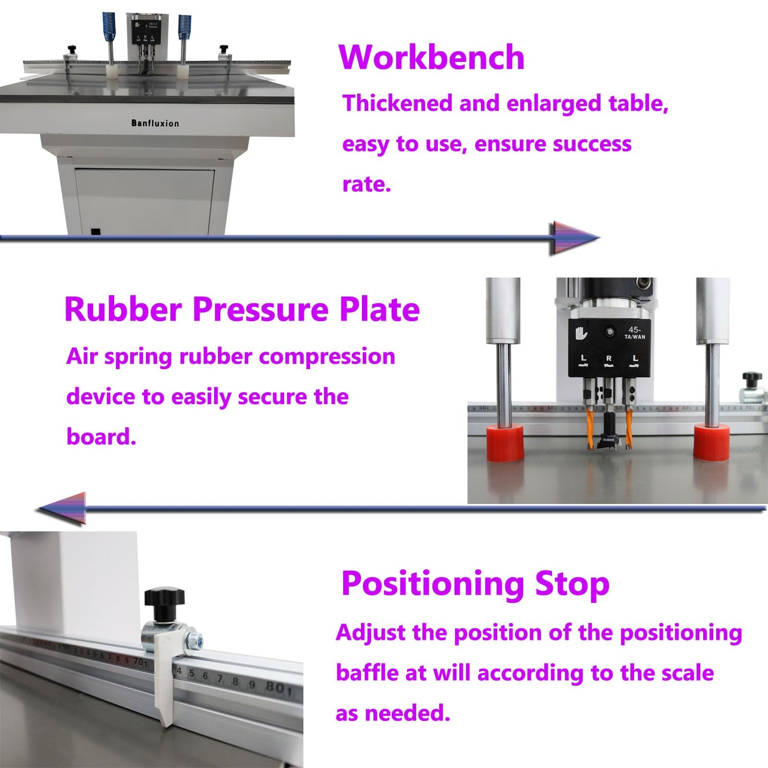 - 【Accurate Scale】: The 110V hinge boring drill press machine is equipped with an accurate scale and a positioning stop. The precise scale is accurate to reduce the error rate. In addition, the positioning stop could adjust the position of the positioning baffle at will according to the scale.