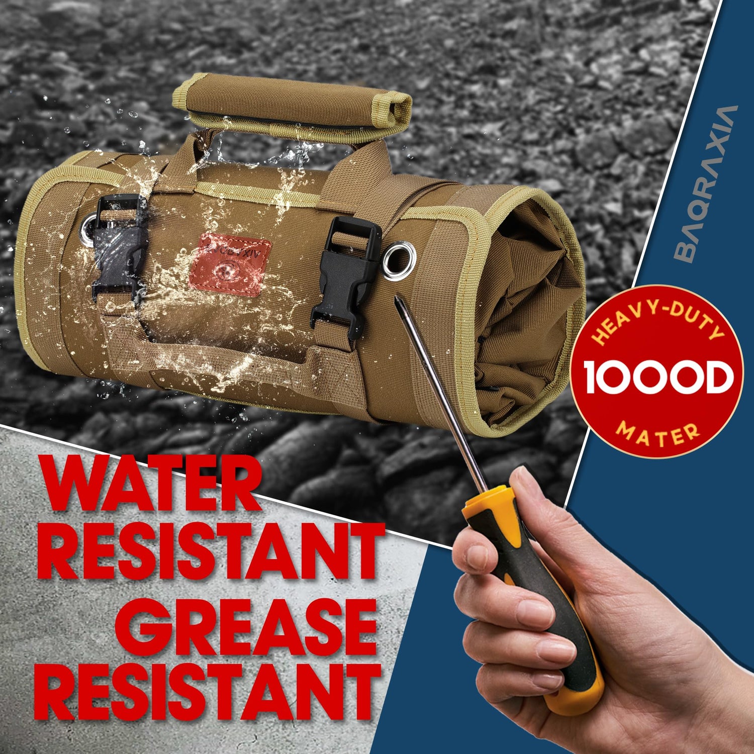 • DURABLE AND COMPACT DESIGN: This tool storage box features durable and water-resistant Oxford Fabric. With rust-proof zippers, quality straps, buckles, and well-stitched edges, this bag is built to last. The rolled size is 19.7 x 3.9 inches, it takes up less space.