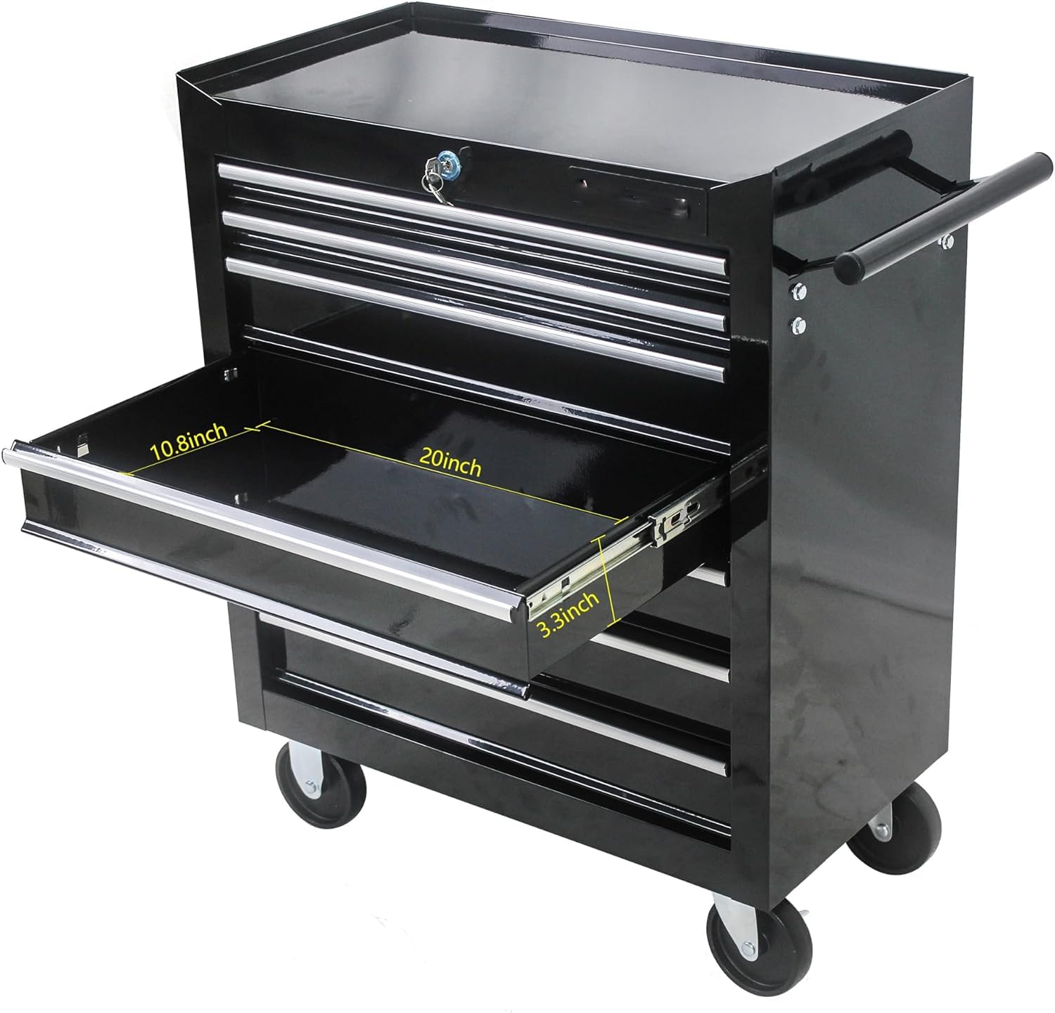 BouPower 7-Drawer Tool Chests, Rolling Tool Storage Cabinet with Detachable Tray - Black Black