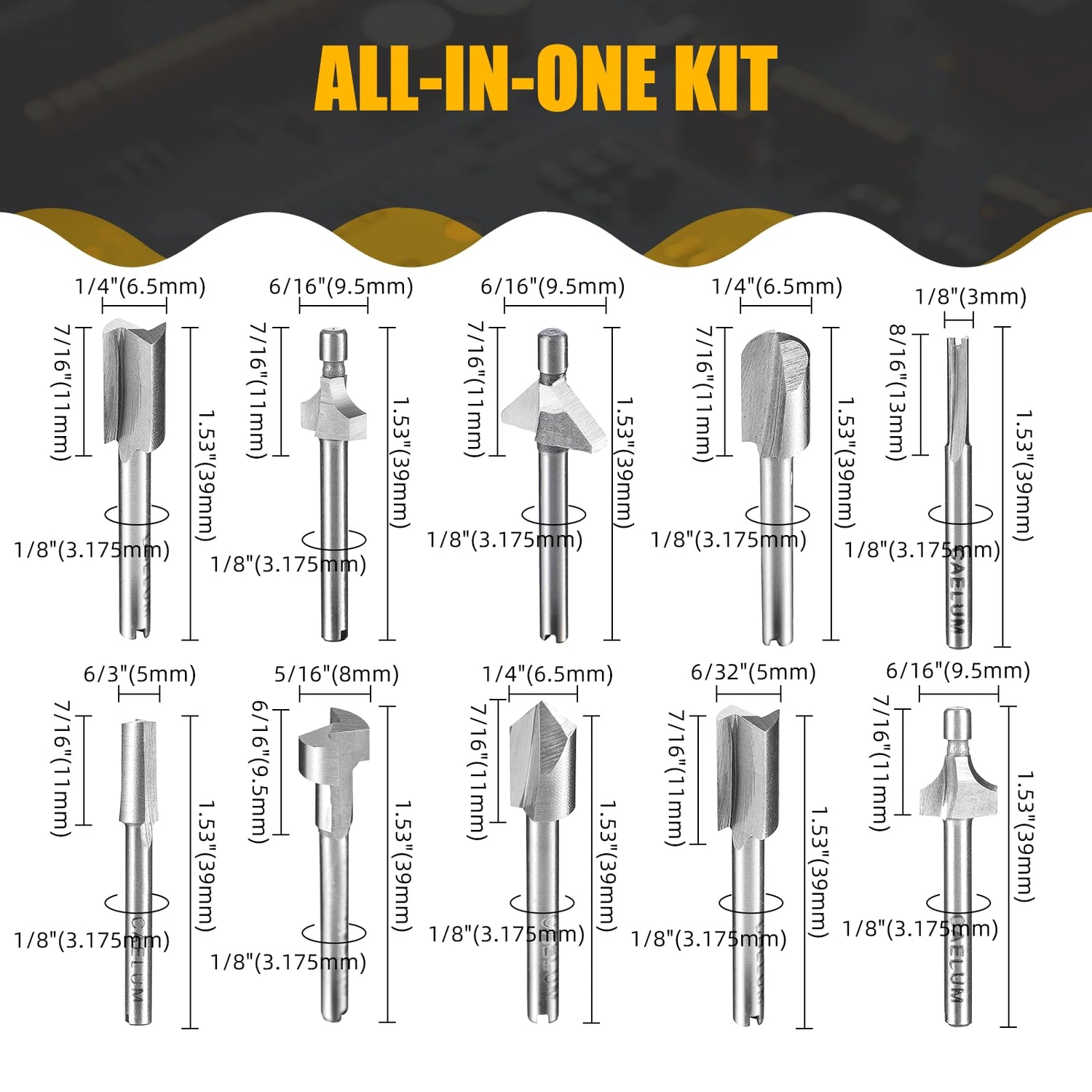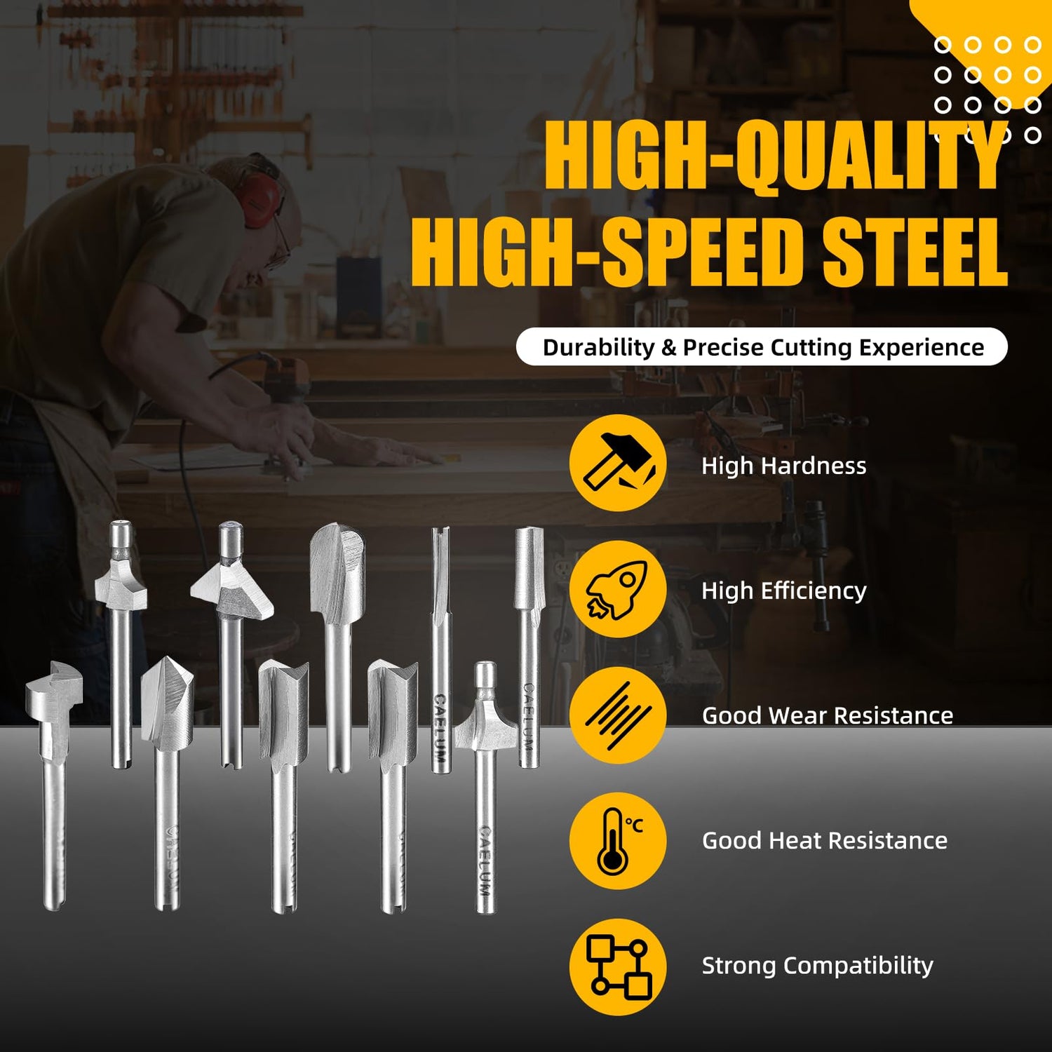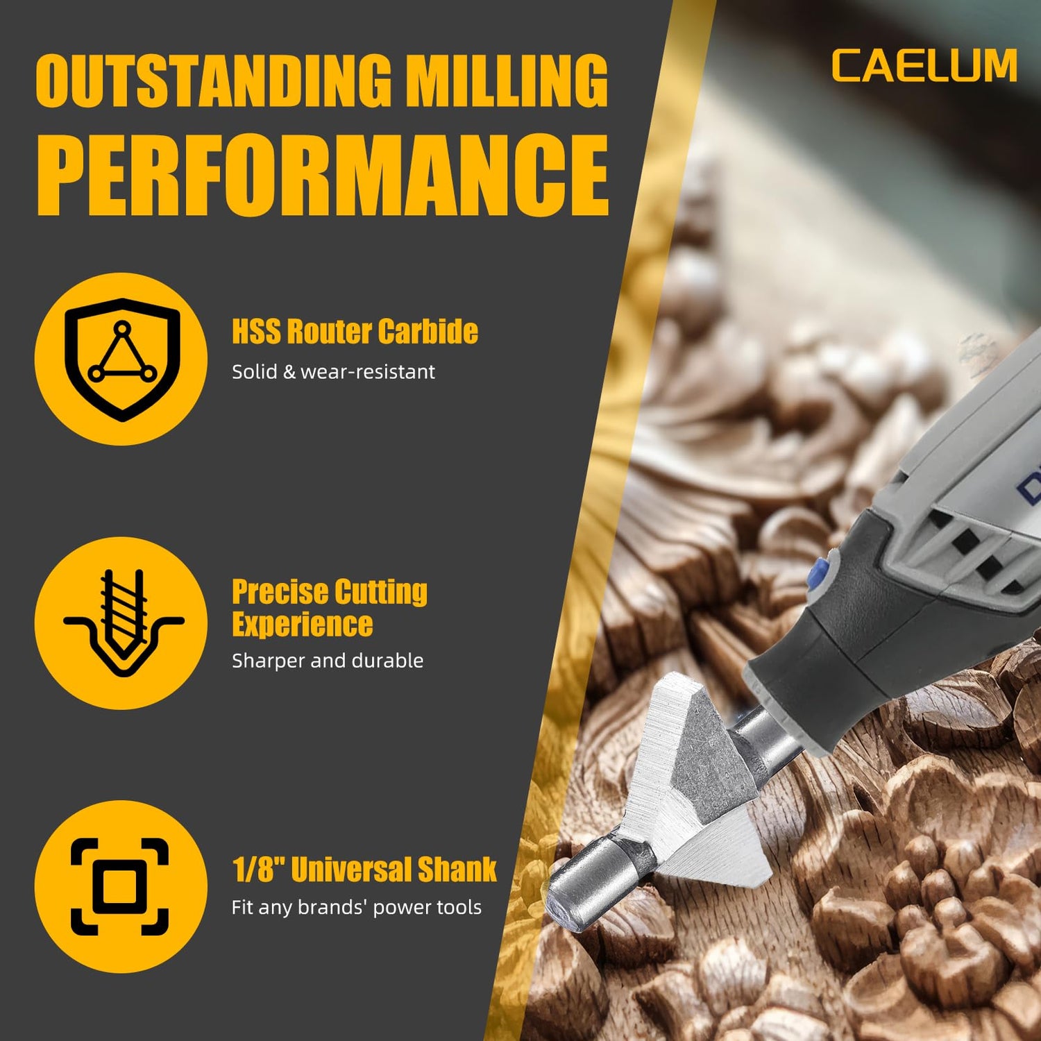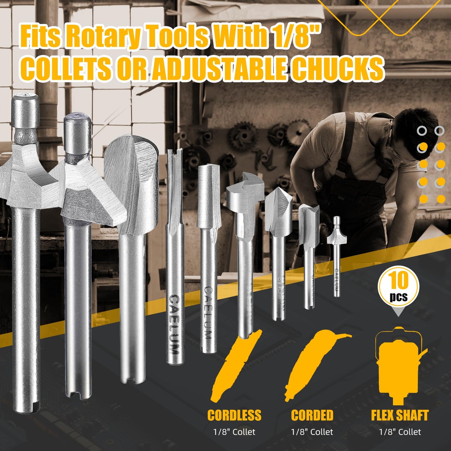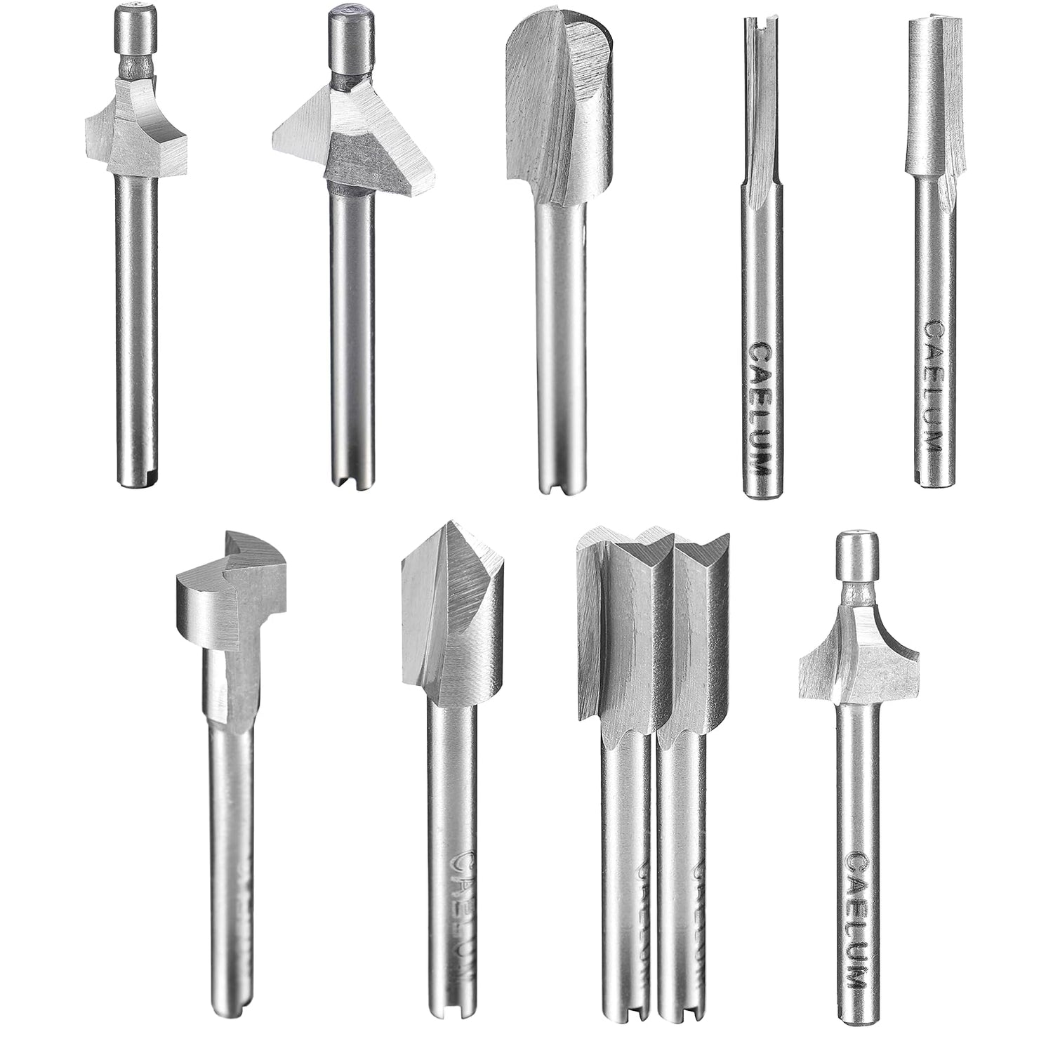 Caelum 10 Pcs HSS Router Carbide Engraving Bits, 1/8"(3mm) Shank, Milling Cutter Bit Set, Rotary Tools Set, for Dremel Tool Accessories, Tools for DIY Woodworking, Edge Grooving, Drilling, Trimming