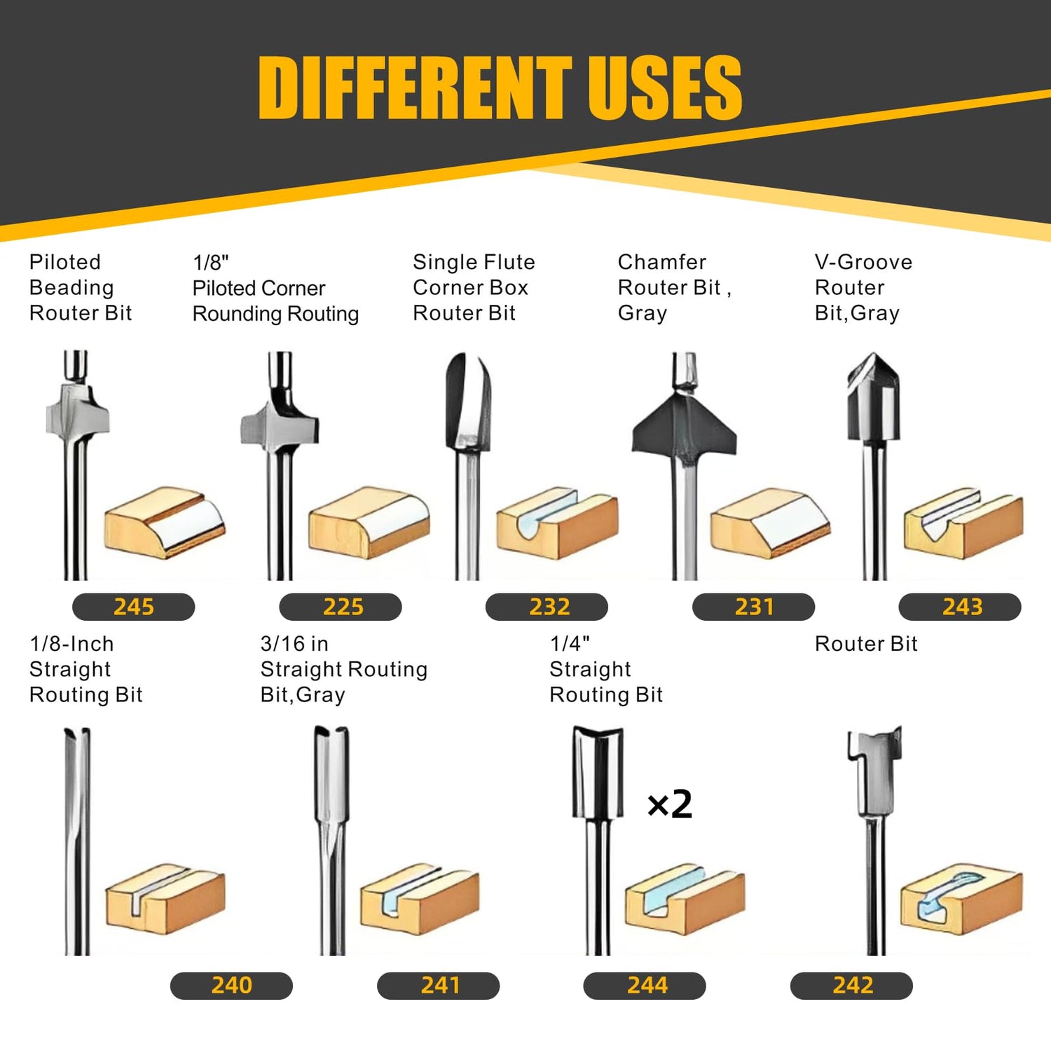 • Advanced Material: Our router bits are made of HSS high-speed steel for long life and precise cutting experience, high working efficiency, saving you energy and time