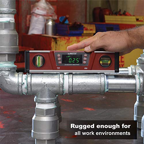 Calculated Industries 7210 AccuMASTER PRO Digital Torpedo Level and Protractor | 10” Inch | Neodymium Magnets | Bright LED Display | IP54 Dust/Water Resistant, Red