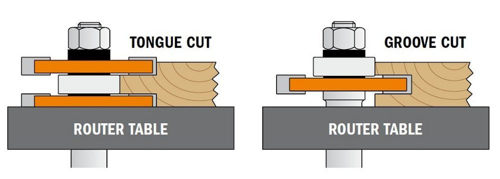Make tongue and groove joints without the complicated process of taking apart and reassembling bits. The new CMT Tongue and Groove set gives you one bit to groove the slot and a separate bit to mill the tongue. Or use your imagination and put them to work individually on other projects. Makes tongue and groove cuts in wood up to 3/4" thick. Sold as a Set. Slot cutter with arbor and bearing available separately, slot cutters.