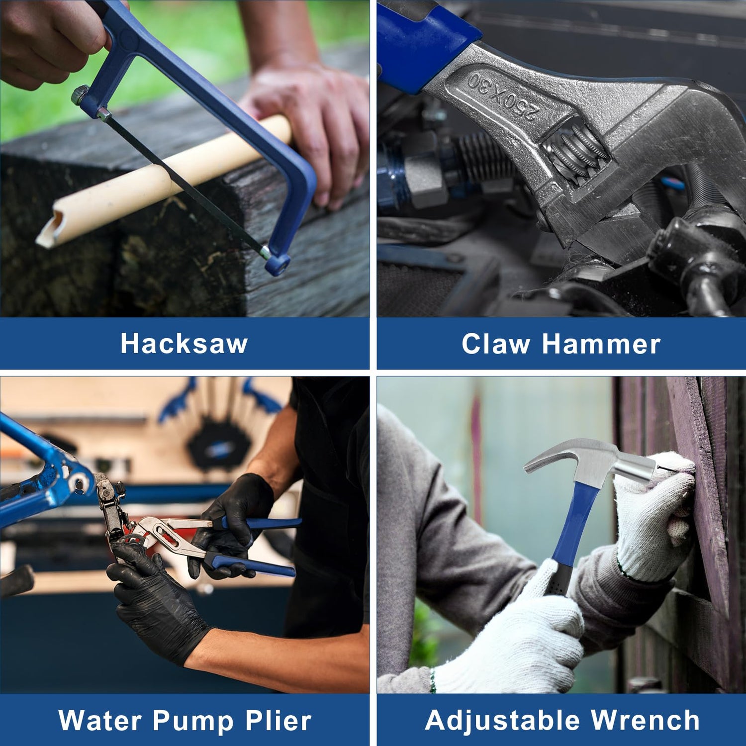- 【WELL MANUFACTURED TOOLS】 The household tool set includes hand tools that are manufactured from steel alloy, chrome vanadium for strength and durability. The non-slip handles provides comfort grip. Tools are compact in size and light in weight so that you can work with less fatigue.