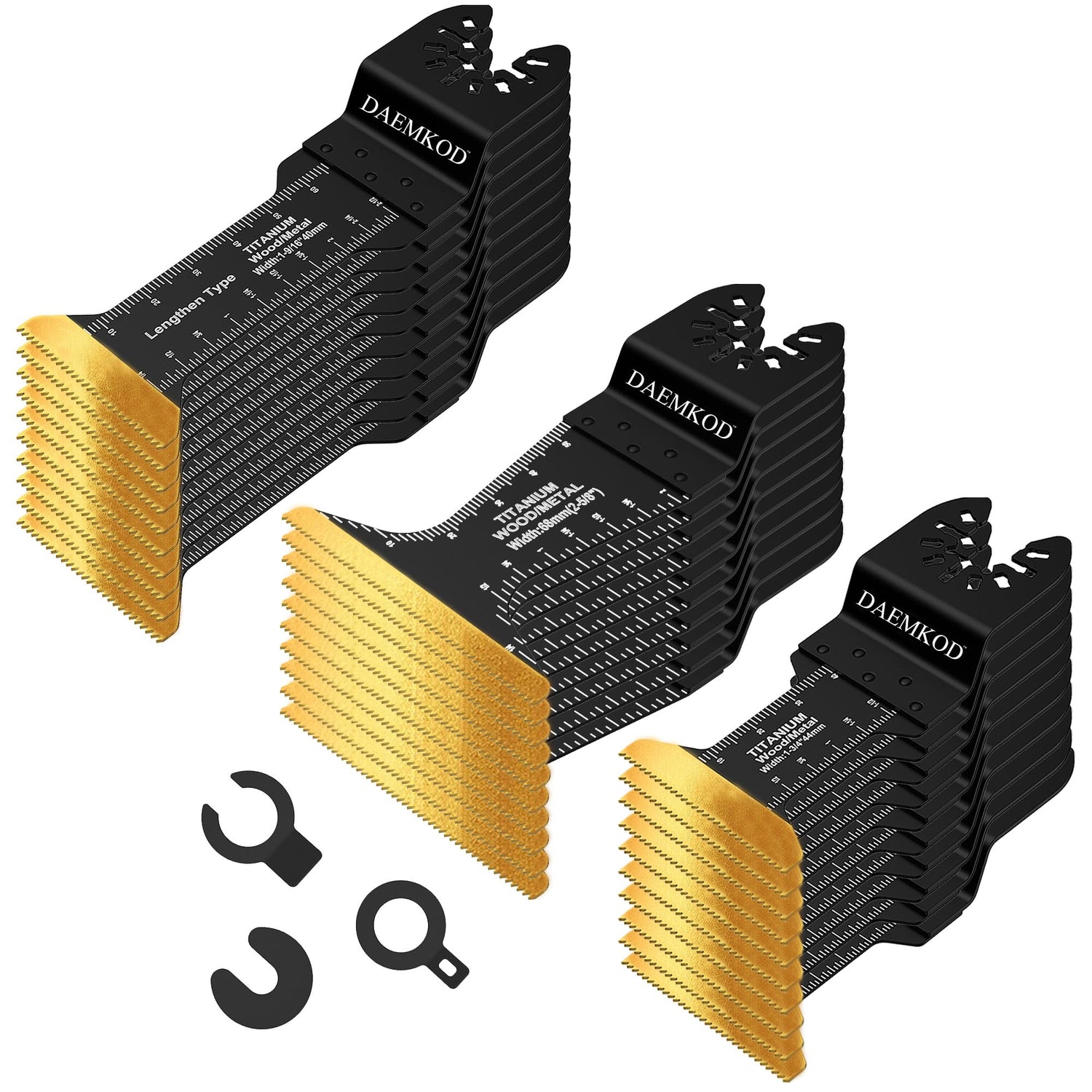 DAEMKOD 30 Pack Titanium Oscillating Tool Blades Metal Cutting, Professional Saw Blades for Soft Metal Nails Hard Material and Wood Plastic, Multi Tool Blades Kit for Oscillating Tool Accessories