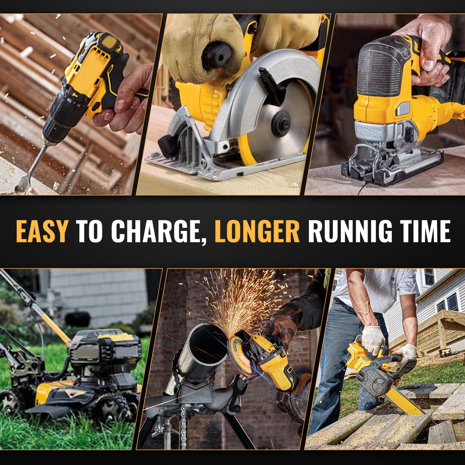 - Perfect Compatibility: Replacement for Dewalt 20V Max battery DCB206, DCB180, DCB204-2, DCB206-2, DCB200-2, DCB200 DCD Series, DCF series, DCG series, DCS series. Also compatible with Dewalt battery DCB107 DCB115 DCB118 DCB104 DCB102 charger.