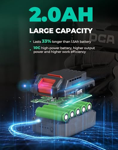 • [Extended Run Time with 2.0Ah Battery] This cordless drill set provides 33% more run time than a 1.5Ah battery, allowing you to drive through 800 screws on a full charge or drill through a 19/16-inch thick wooden board for 100 times.