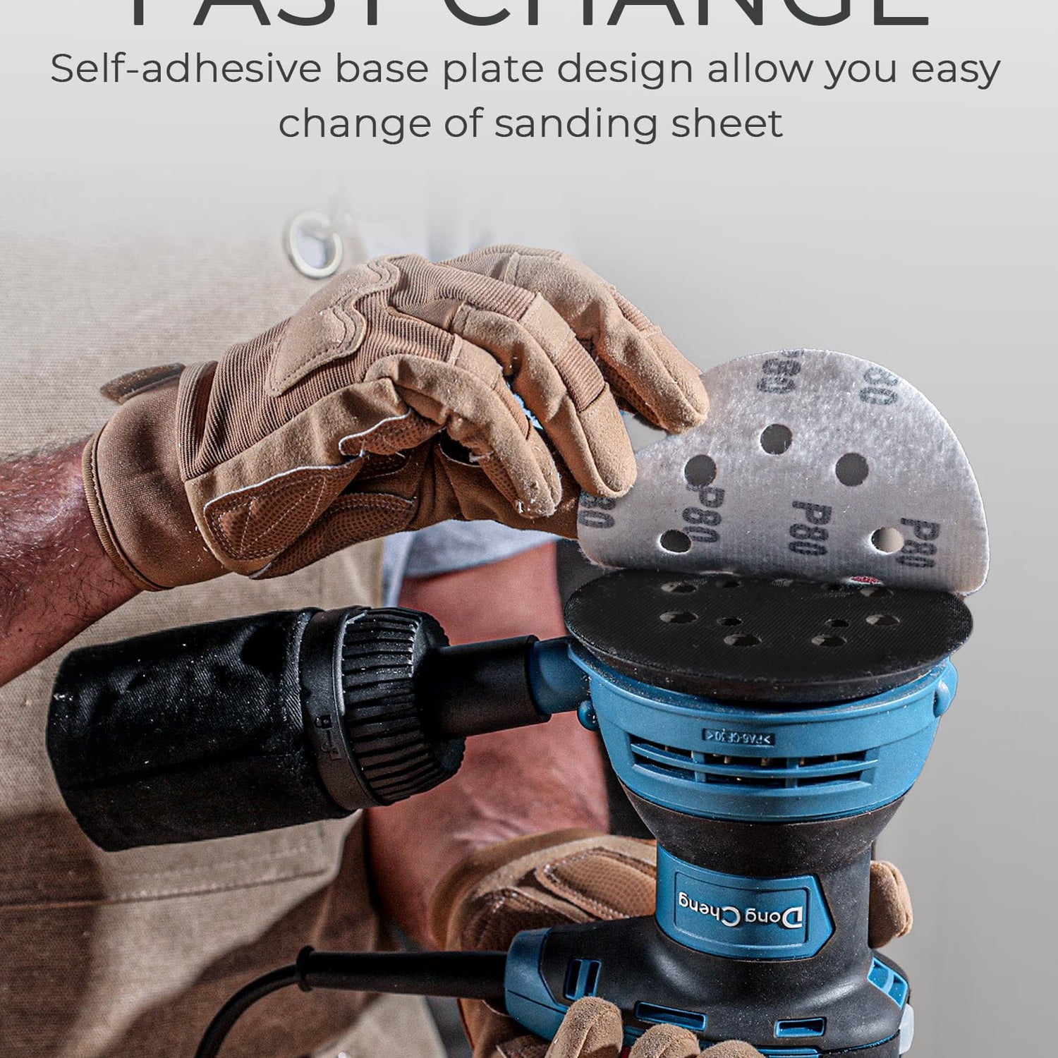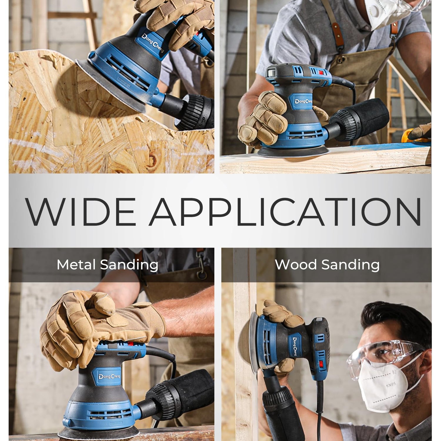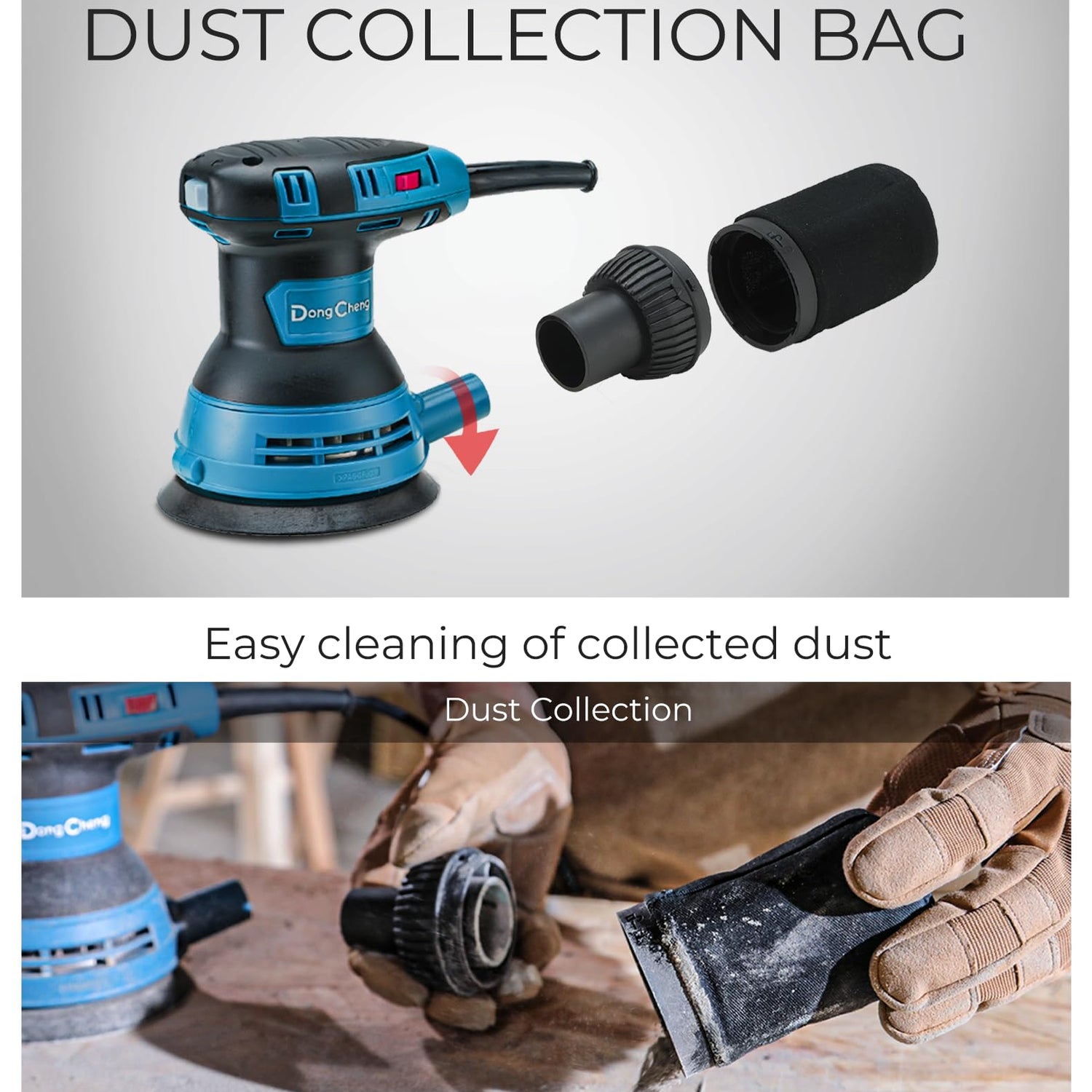 DongCheng 5” Random Orbital Sander, 3.0 Amp 12000OPM, 6 Variable Speed Electric Sander Kit with 10pcs Sandpapers & detachable Dust Collector, for Woodworking/Sanding/Polishing